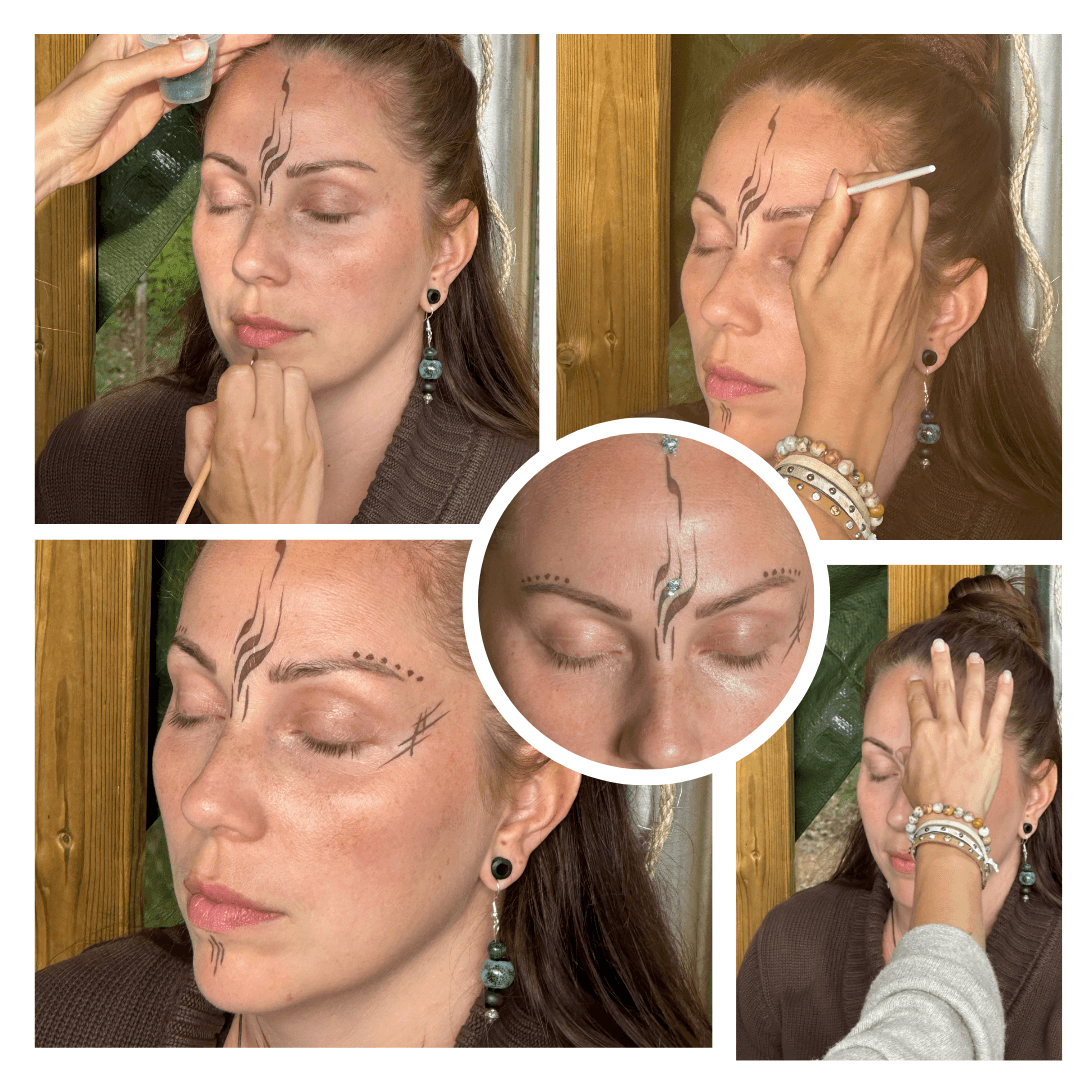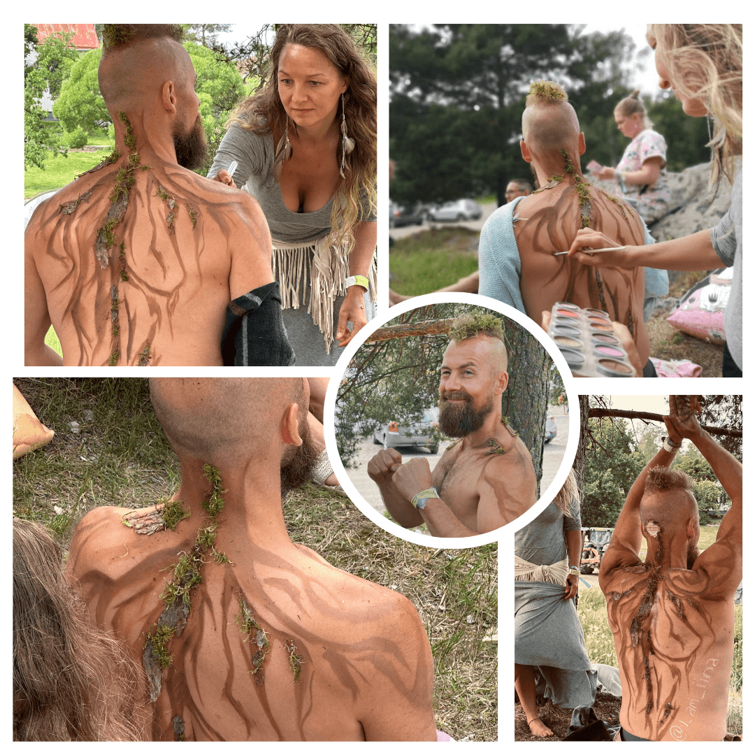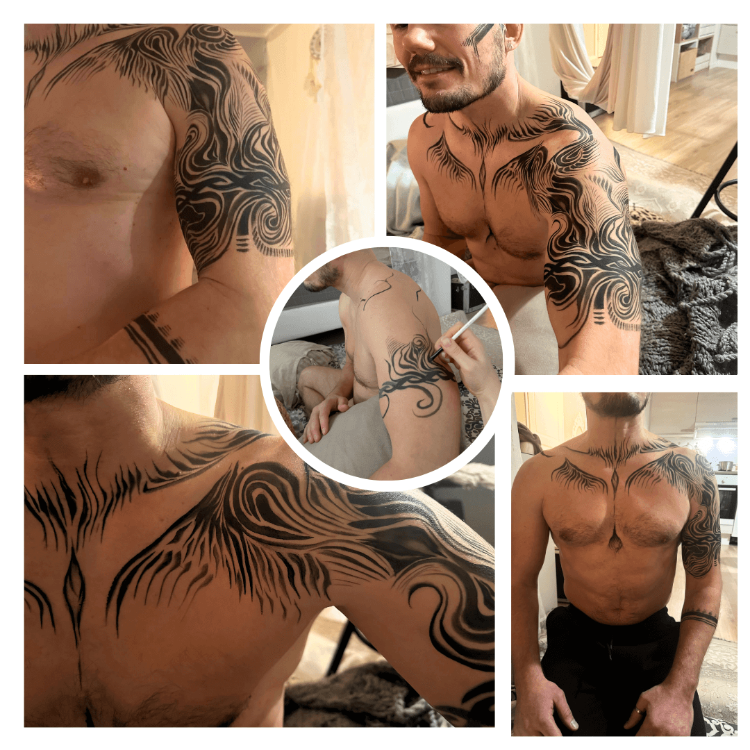 Tämä palvelu sopii tatuoinnin kokeiluun ja hahmottamiseen. "Sacred Tattoo Trial". Pääset kokeilemaan kuvaa kehoosi ennen oikeaa tatuointia, pääset testaamaan miten vanhaa kuvaa voisi esim. peittää tai muokata. Jos pidät kanavoidusta maalauksesta tai osasta siitä, tatuointiartisti osaa tehdä kuvasta kestävän version ihollesi. Maalauksen aikana pyydän sinua liikkumaan, jotta kehosi muodot, luuston ja lihasten liike tulee esiin. Näin maalaus herää eloon liikkeessäsi.