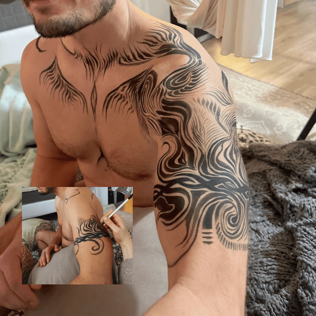 MiniElämyksessä pääset tutkimaan eri elementtejä kuten sitä miltä tatuointi näyttäisi tietyllä alueella kehollasi. (Katso kuvat)
