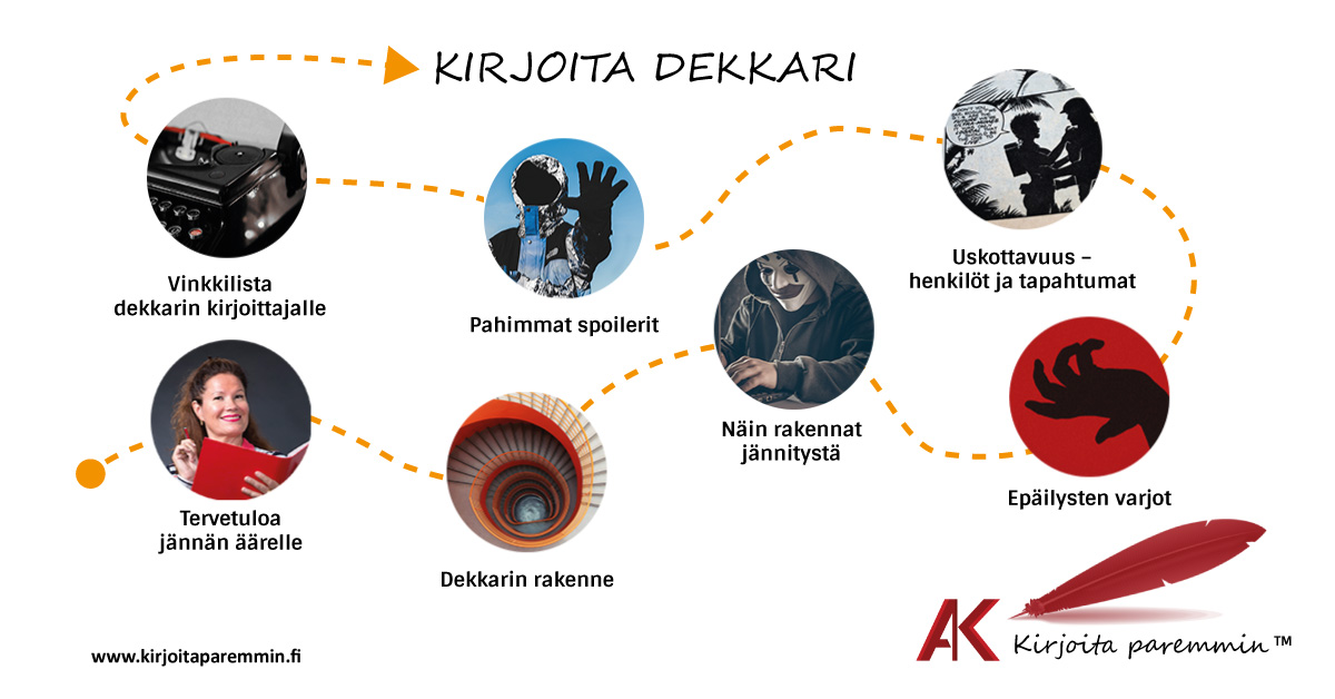 Tällä kuuden viikon kurssilla opit kaiken tarvittavan toimivasta dekkarin rakenteesta ja koukuttavasta kirjoittamisesta: