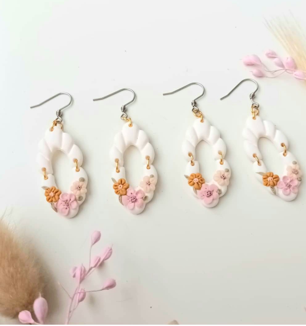 Nämä kauniit ja täysin käsityönätehdyt kauniit ja uniikit korvakorut ovat valmistettu polymeerimassata. Pituus noin 4 cm. Korvakorujen koukut ovat nikkeli vapaata kirurginterästä. Korut sisältävät silikoniset "takastopparit".