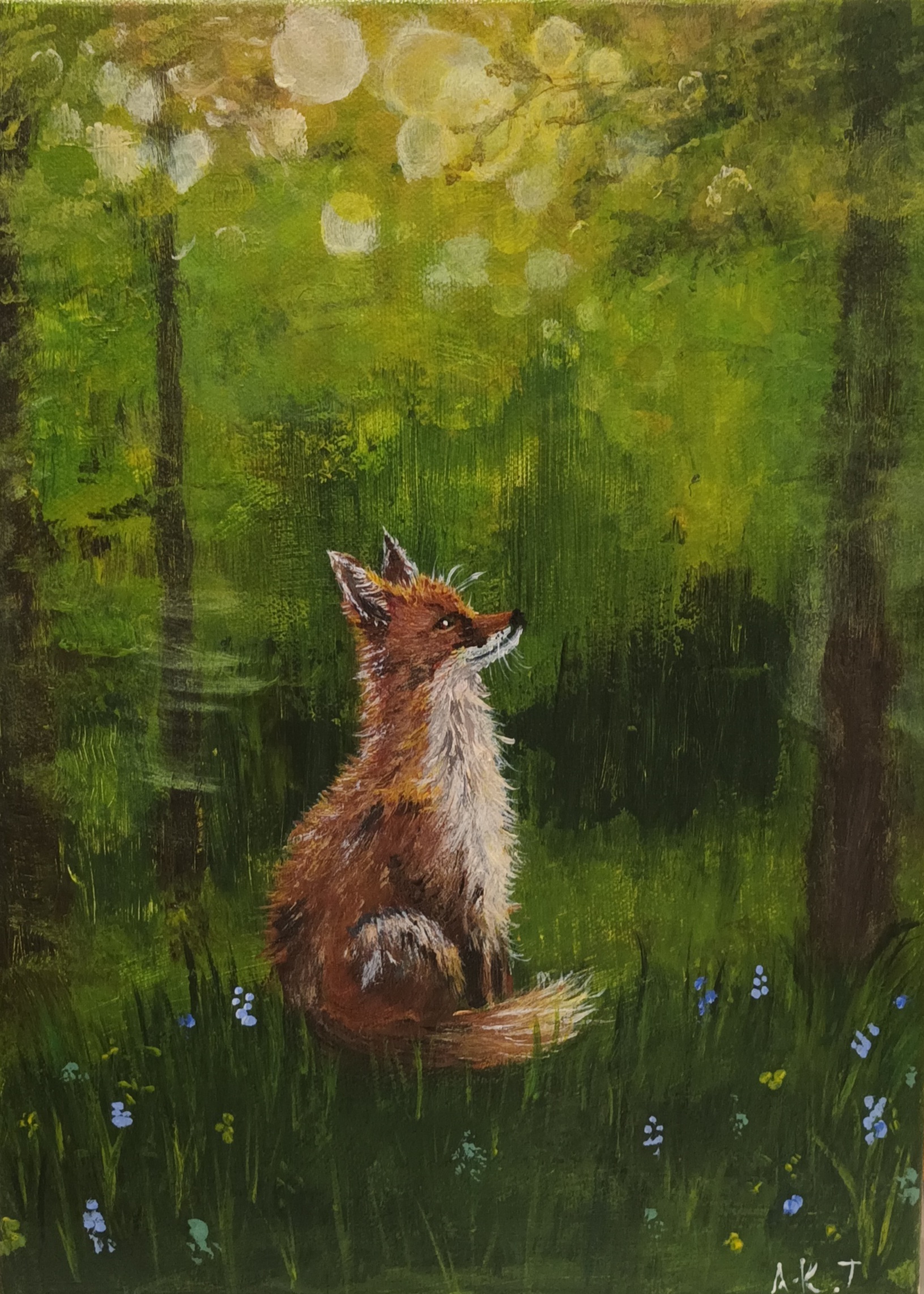 "Kettu metsässä" on maalaamani teos. Maalaus on maalattu akryyliväreillä canvas pohjalle. Taulun koko on 33x24 cm. Inspiraationa teokseen on suomen luonto. Taulu on ripustus valmis.