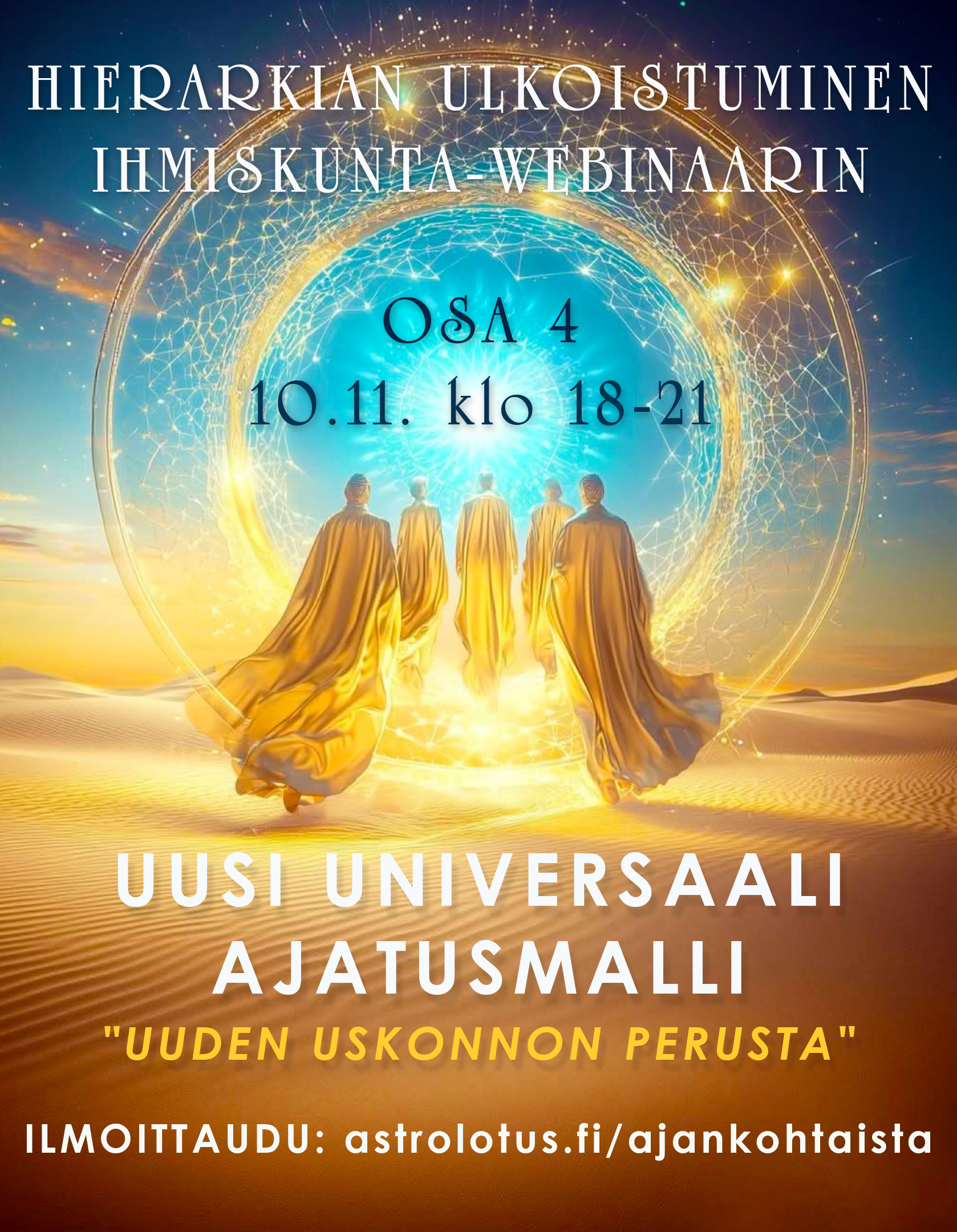 Tämä on planeettamme henkisen Hierarkian ulkoistumista ja ihmiskunnan kohtaloa käsittelevän webinaarisarjan OSA 4 - UUSI UNIVERSAALI AJATUSMALLI - "UUDEN USKONNON PERUSTA"