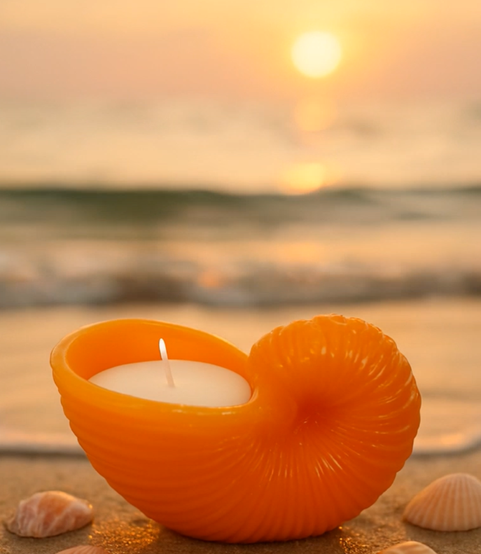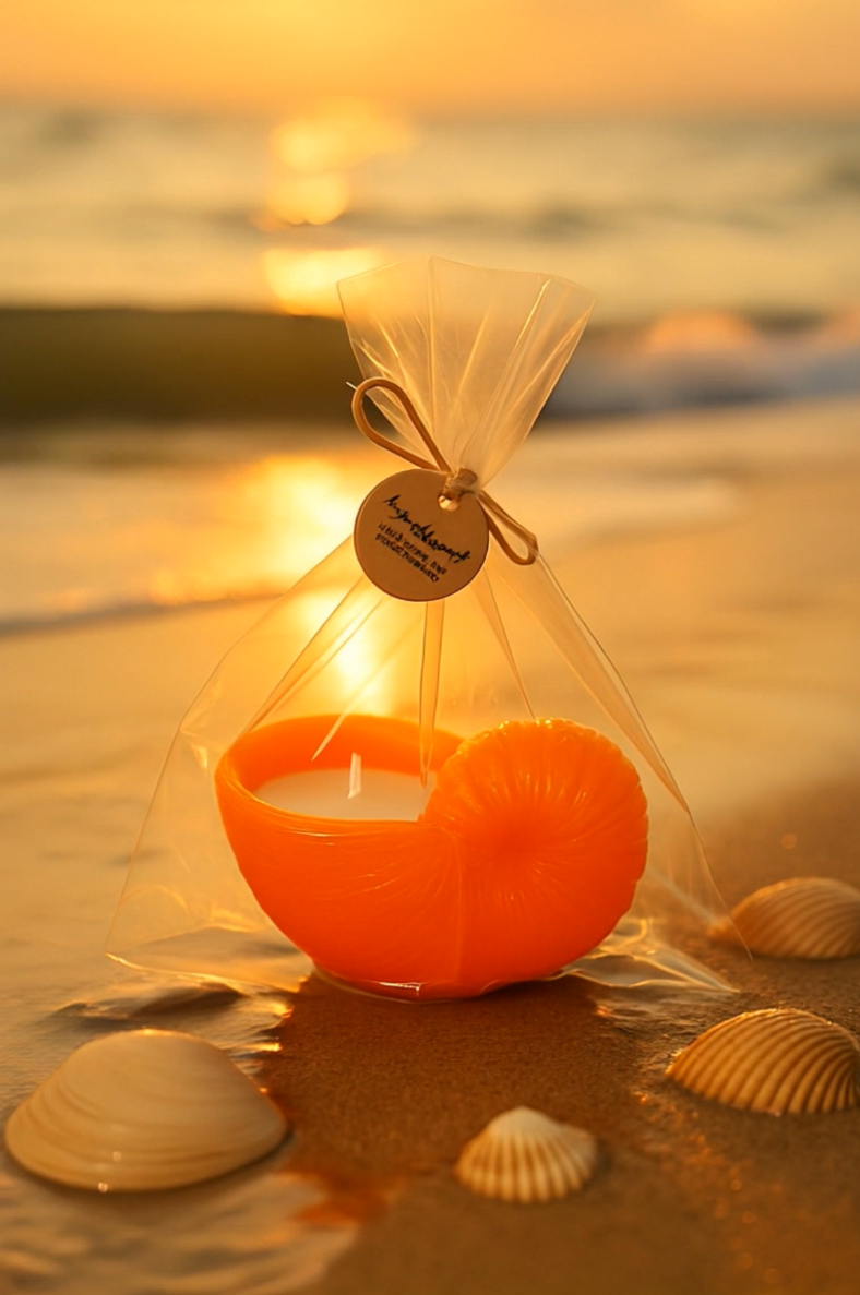 Käsinvalettu oranssi parafiinikynttilä. Paino 273g. Korkeus 7cm. leveys 13cm syvyys 7cm.