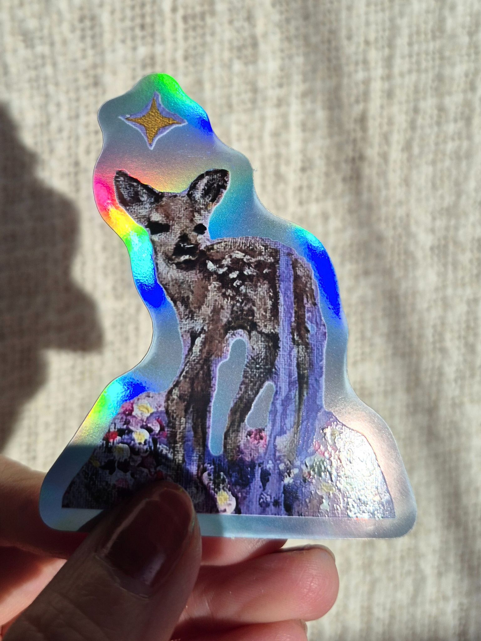 Maalaukseni pohjalta teetetty hologrammitarra, yksi kappale. Tarrat on painettu 7x7cm mittoihin, koko vaihtelee muodon mukaan. Painettu Hollannissa.