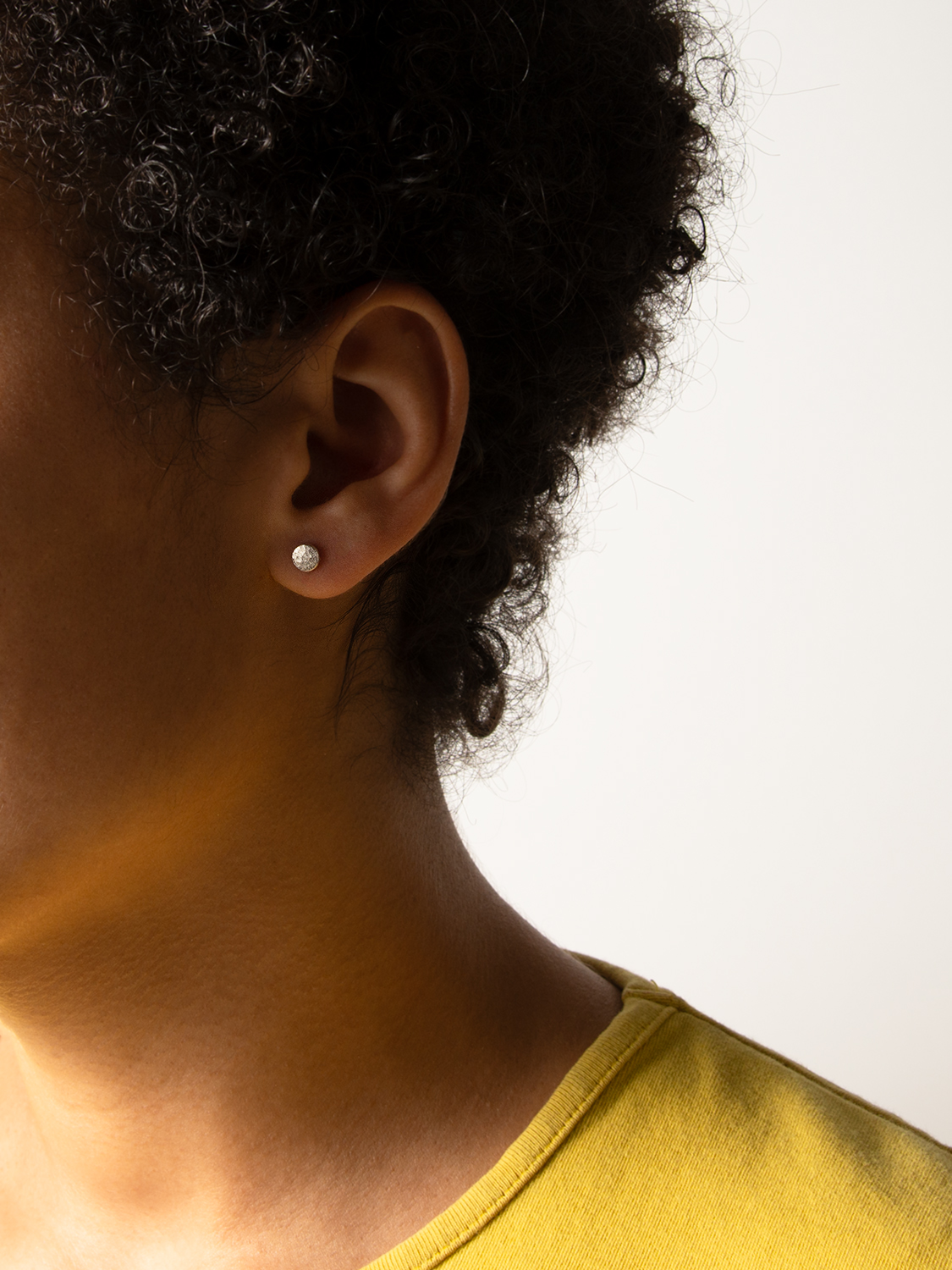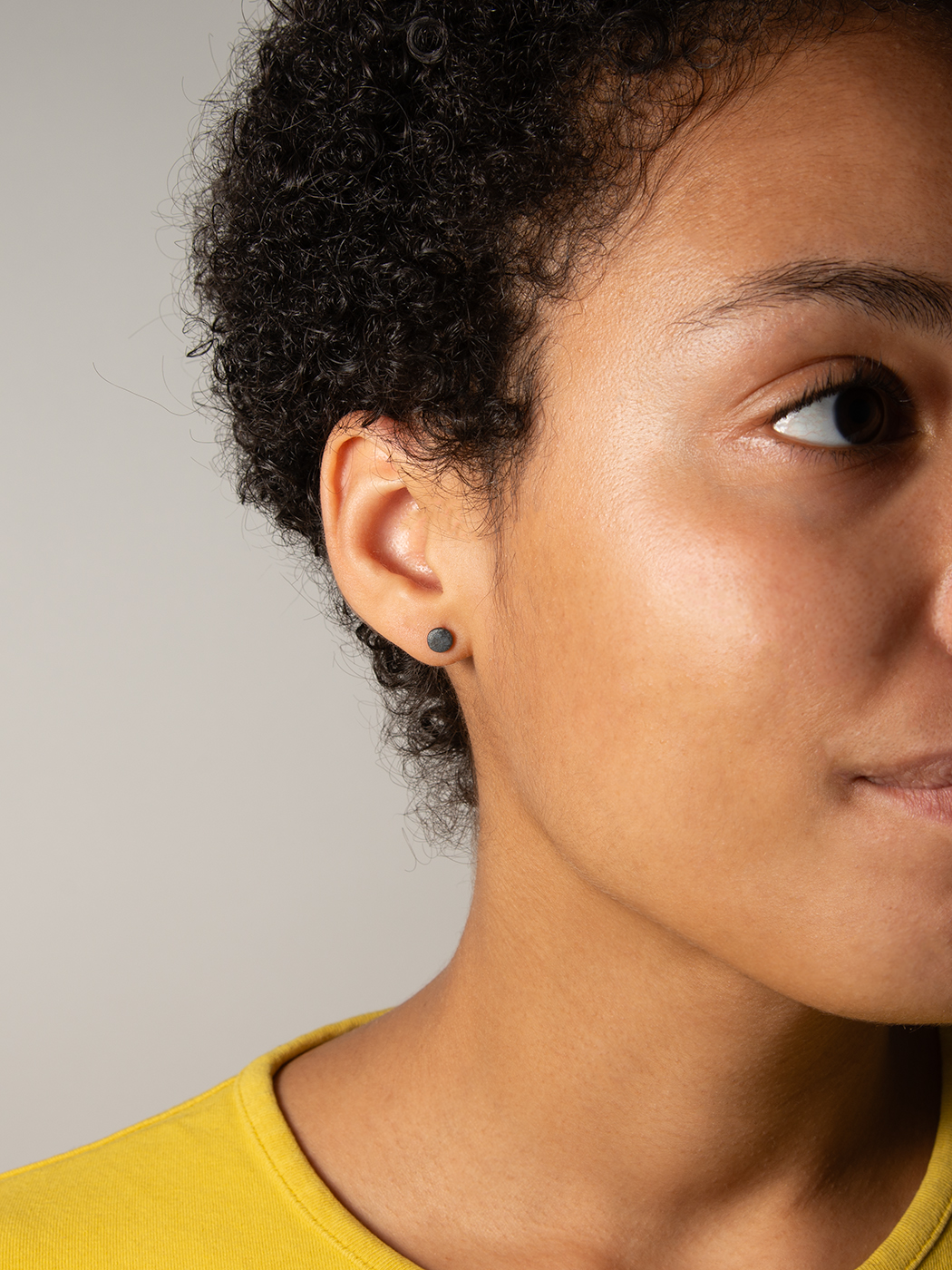 Kierrätyshopeiset pikkukorvikset tappikiinnityksellä ja vasaroidulla mattapinnalla. Korvakorut ovat saatavissa joko hopeanvärisenä tai mustaksi oksidoituna. Valitse haluamasi väri tilausta tehdessäsi. Korvakorujen halkaisija on noin 5mm.