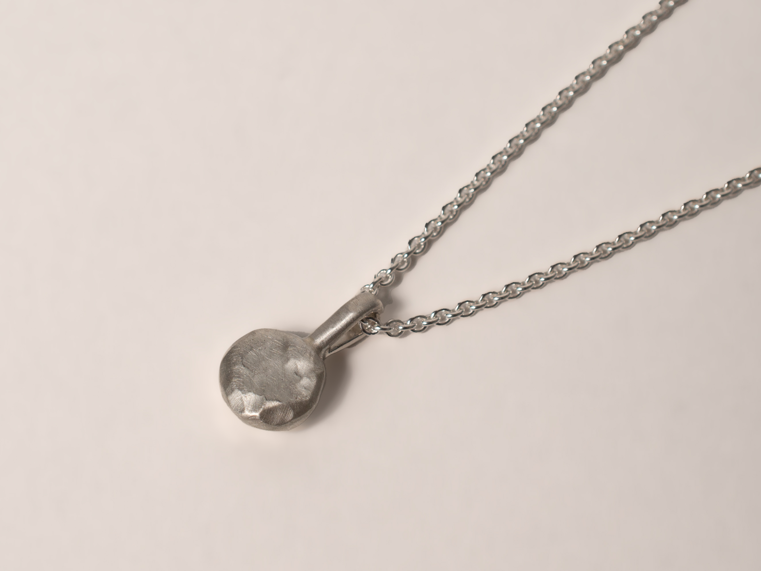 Kierrätyshopeinen kaksipuoleinen kaulakoru, jota voi käyttää joko kiiltävällä pinnalla tai vasaroidulla mattapinnalla. Kaulakoru on valmistettu käsityönä Suomessa. Riipuksen korkeus on noin 15mm ja hopeisen ankkuriketjun leveys 1.5mm. Valitse koruun sopiva ketjun pituus 40, 42, 45, 50 tai 55cm tilausta tehdessäsi.