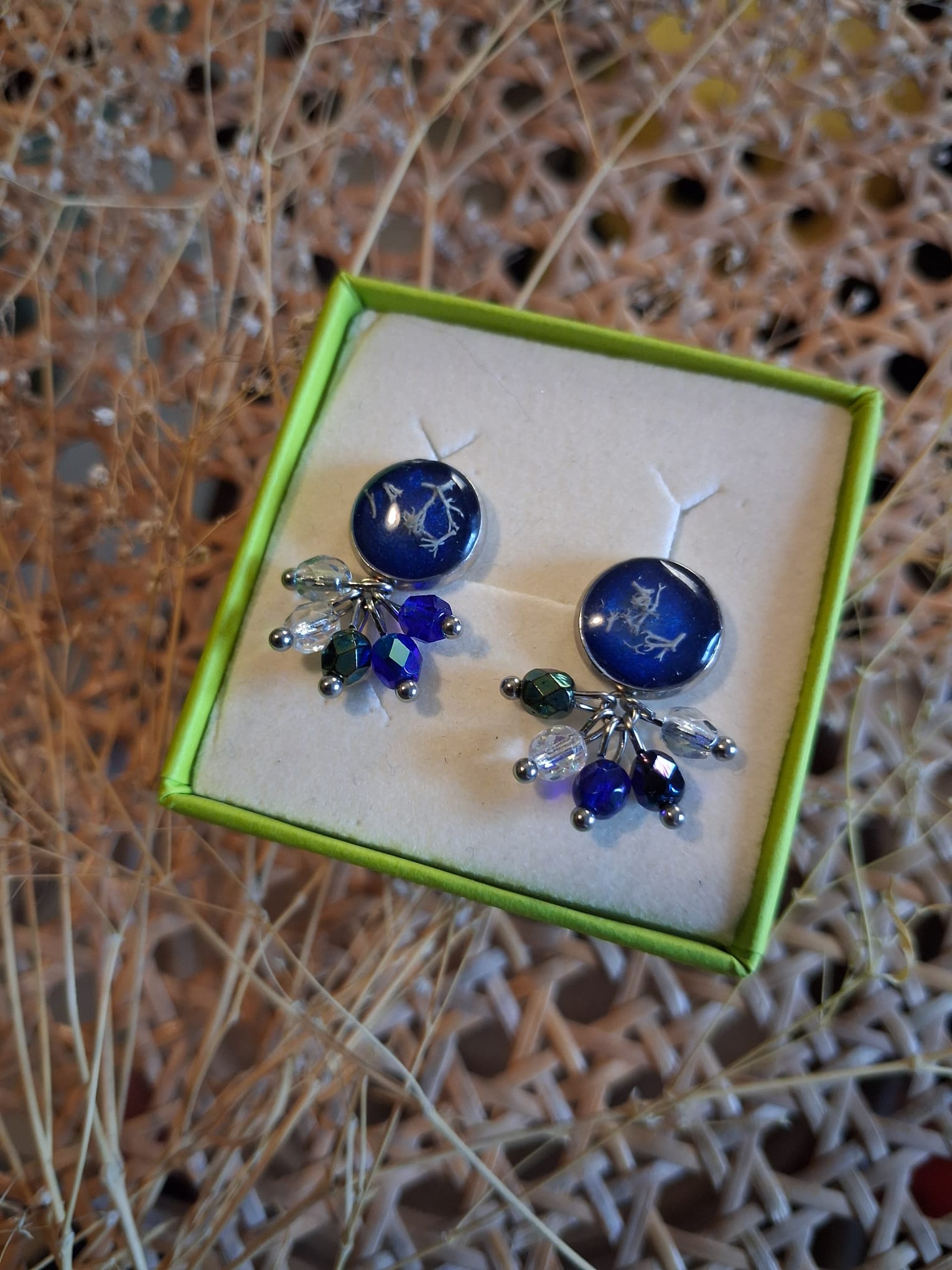 Cladonia -jäkälä Poronjäkälää Suomen sinisessä pohjukkeessa, siniset lasihelmet