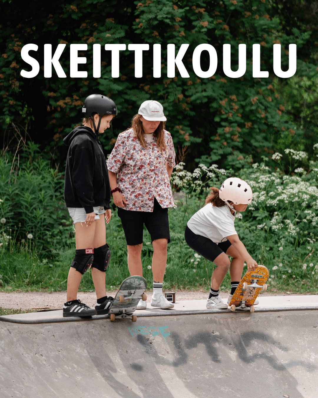 Skeittikoulu Helsingissä, Eläintarhan skeittipuistossa osoitteessa Nordenskiöldinkatu 20. Skeittikoulu sisältää 2 tuntia skeittiopetusta kokeneilta opettajiltamme. Tämän kurssin ajankohta on la 30.5. klo 10-12. Saat tarvittaessa välineet lainaksi Skeittikontilta, mutta jos omaat omat välineet, otathan ne mukaan.