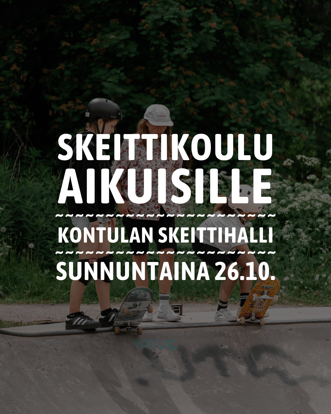Huomioi, että skeittikouluun ilmoittautuminen sulkeutuu kurssia edeltävänä perjantaina klo 16:00.