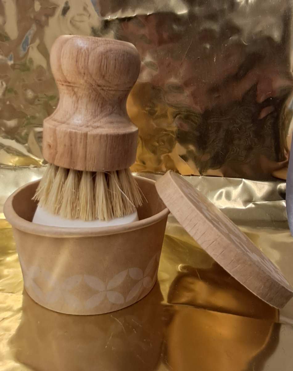 TARJOUS! Norm. 12.40€. Alin hinta 30vrk. Käsitiskiin tarkoitettu saippua , joka valmistettu kasviöljyistä, kookoksesta sekä risiinistä. Pataharja on puuvartinen, harjakset ovat suhteellisen jäykät, jolloin puhdistustehoa löytyy.