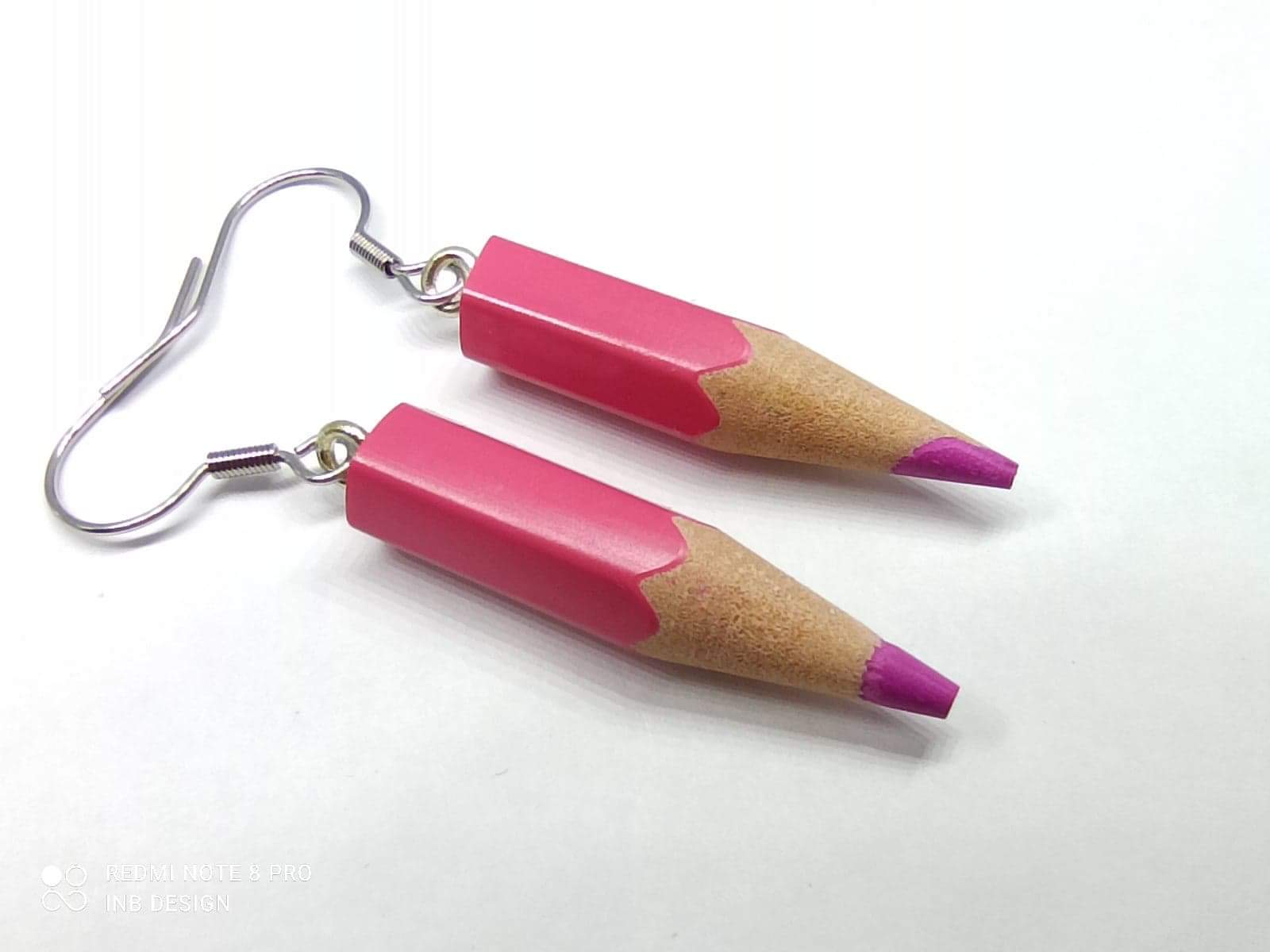 Aidoista kynän pätkistä tehdyt korvikset. Pituus on n. 2,5cm ilman koukkua . Koukut terästä ja tausta silikonia. Huomaathan myös, että korujen värit voivat näyttää luonnossa erilaisilta riippuen käyttämäsi laitteen näyttöasetuksista.