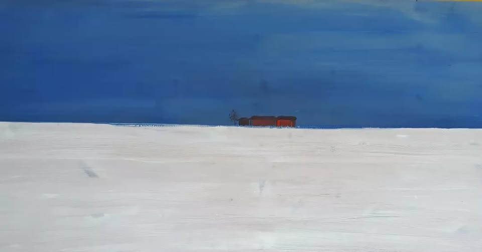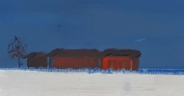 Härmä, öljy paksulle puulevylle, 60 x 120 cm. Painava teos. Ripustusvalmis.