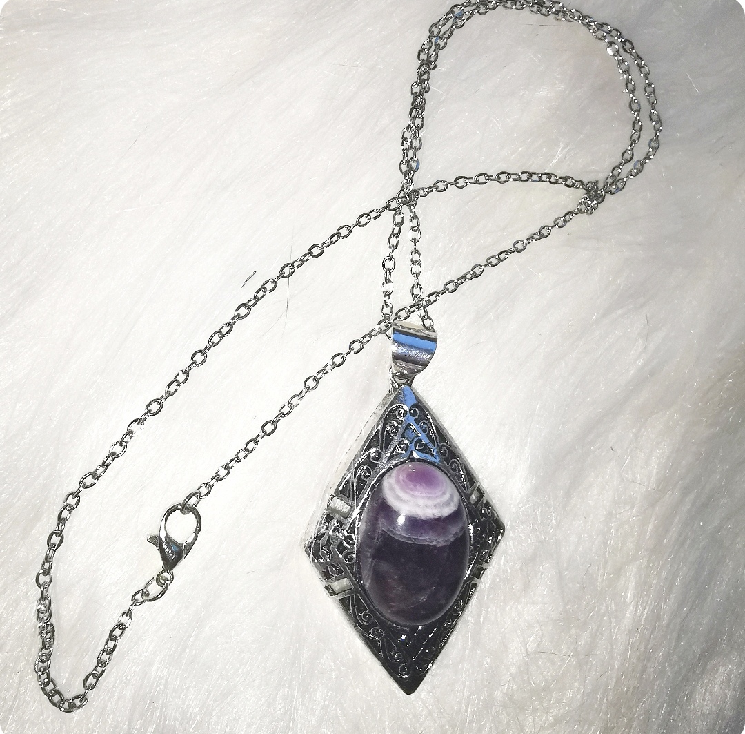 Kaunis vintage tyylinen tina kaulakoru ametistilla. Kiven koko noin 2cm.