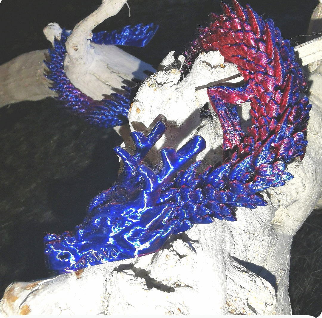 3d tulostettu lohikäärme, pituus noin 30cm.