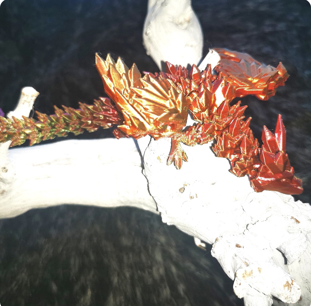 3d tulostettu lohikäärme. Pituus noin 25cm.