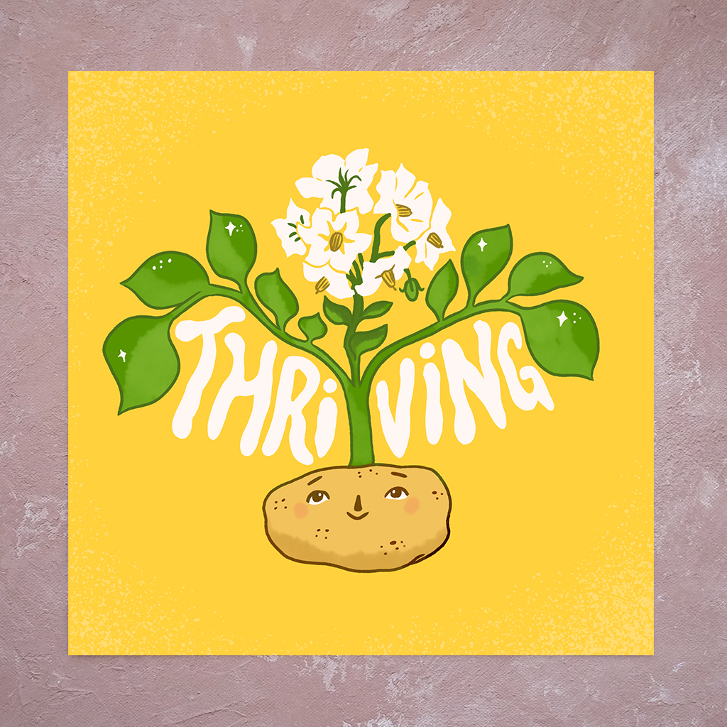 Toinen on kuin ruusu, toinen on kuin kukoistava peruna - thriving potato! Taideprintti kaikille kukoistaville perunafaneille.