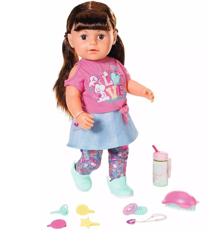 Huom! ALENNETTY hinta, koska pakkauksessa kuluma yhdessä kulmassa! 4001167827185 Kylvetettava 43cm BABY born Sister -nukke on tunnetun Baby born vauvanuken isosisko. Nukella on kauniit pitkat hiukset, joita on ihana kammata. Nukke juo ja itkee kyynelia. Pakkauksessa mukana mm. juomapullo, hiusharja, hiusklipseja ja hiuslenkkeja seka rannekorut nukelle ja leikkijalle.