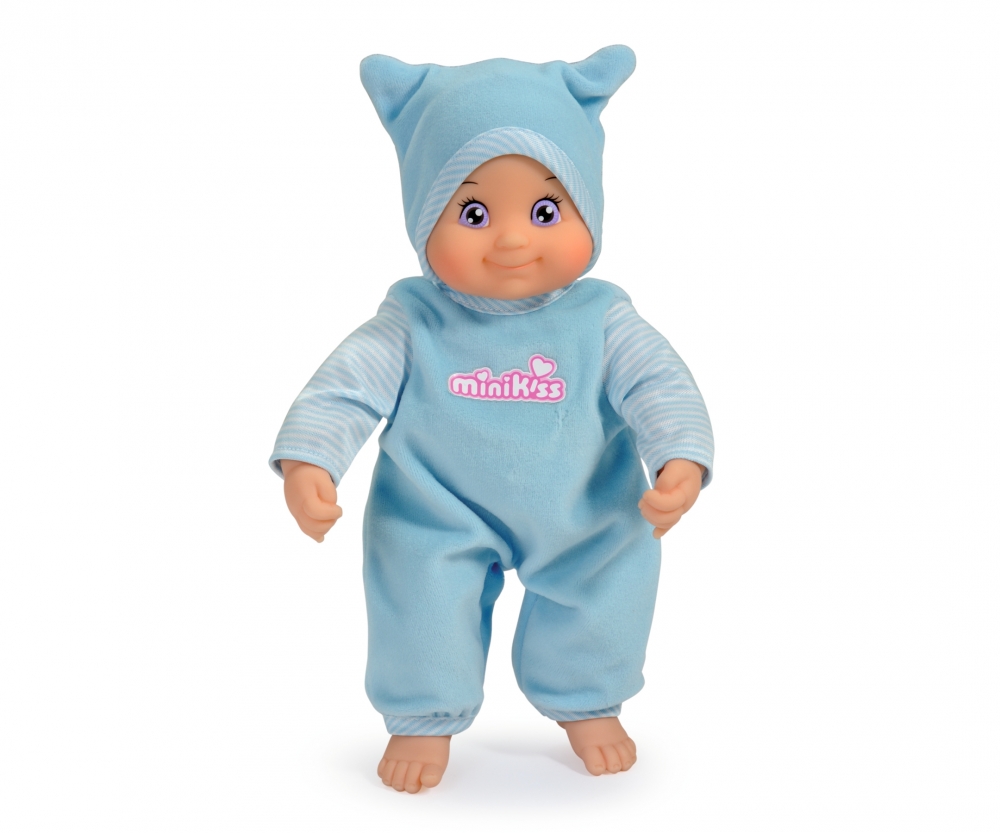 3032162101025 Smoby Minikiss -nukke on noin 30 cm kokoinen pehmeävartaloinen vauvanukke, jossa on muoviset kädet, jalat ja kasvot sekä pyjama ja pipo, ja nukke antaa suukkoäänen vatsaa silitettäessä, mikä tekee siitä hauskan rooli- ja hoivaleikkeihin sopivan lelun yli 12 kuukauden ikäisille lapsille