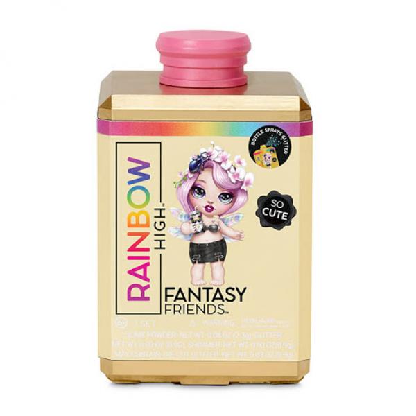 035051567387 Rainbow High Fantasy Friends –sarjan yllätys,nukke setti: tuoksupullo pakattiin kauniiseen pakettiin, pullosta suihkutetaan kimaltavaa glitteriä, kun lisäät veden; sisältää minihahmon asusteineen + “slime”-yllätys, jossa mukana sachetti glitteriä. Hahmoilla pitkät ripset, satumaiset yksityiskohdat kuten kukkia ja perhosia. ToyWiz