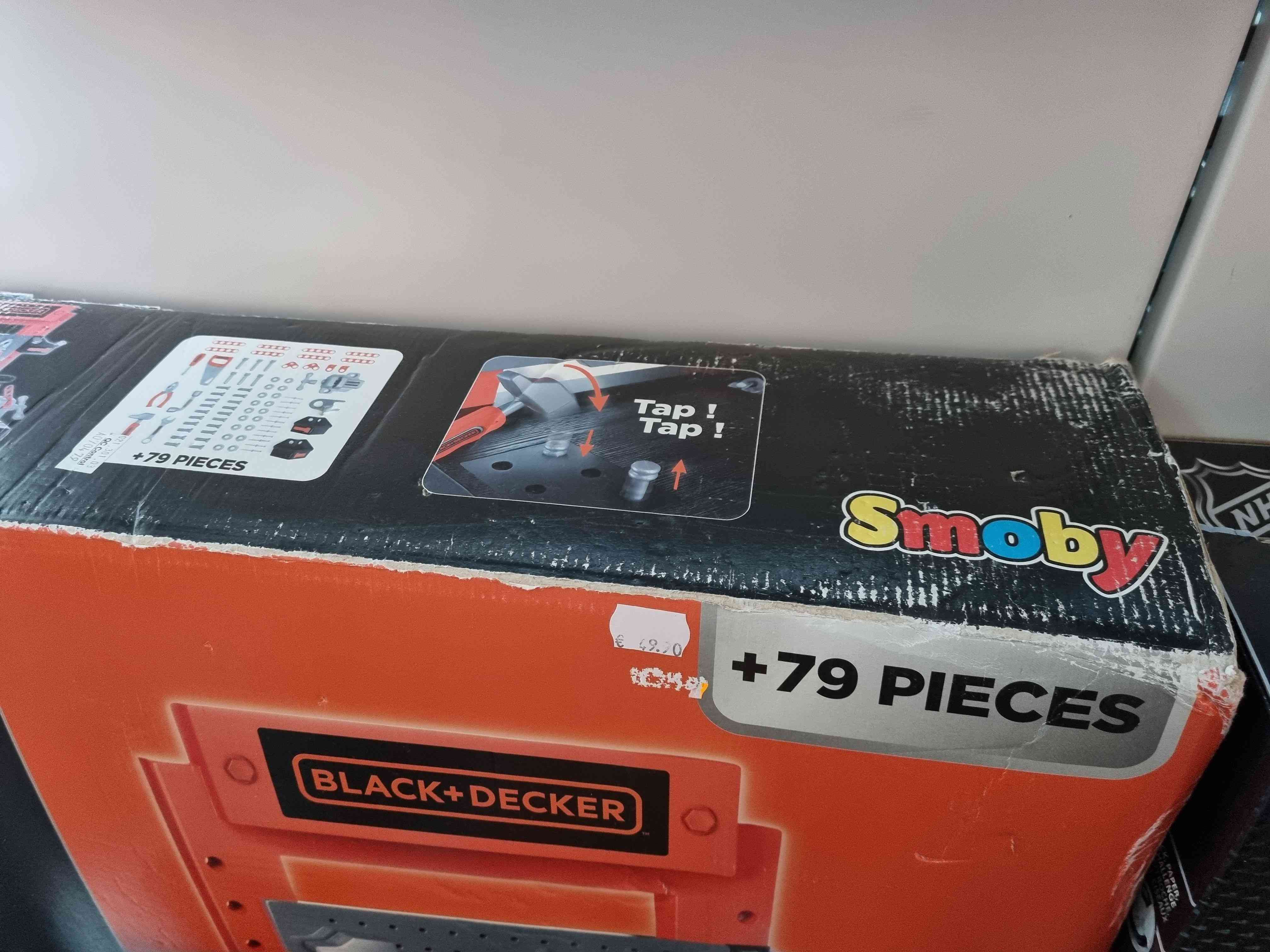 Huom! ALENNETTY hinta, koska pakkaus VÄHÄN KULUNUT 3032163607007 Lasten Smoby Black & Decker -leikkityöpöytä on realistinen työpajasetti, joka sisältää runsaasti työkaluja ja tarvikkeita (noin 75 osaa) ja tarjoaa lapsille hauskaa roolileikkiä sekä hienomotoriikan kehittämistä yli 3-vuotiaille.