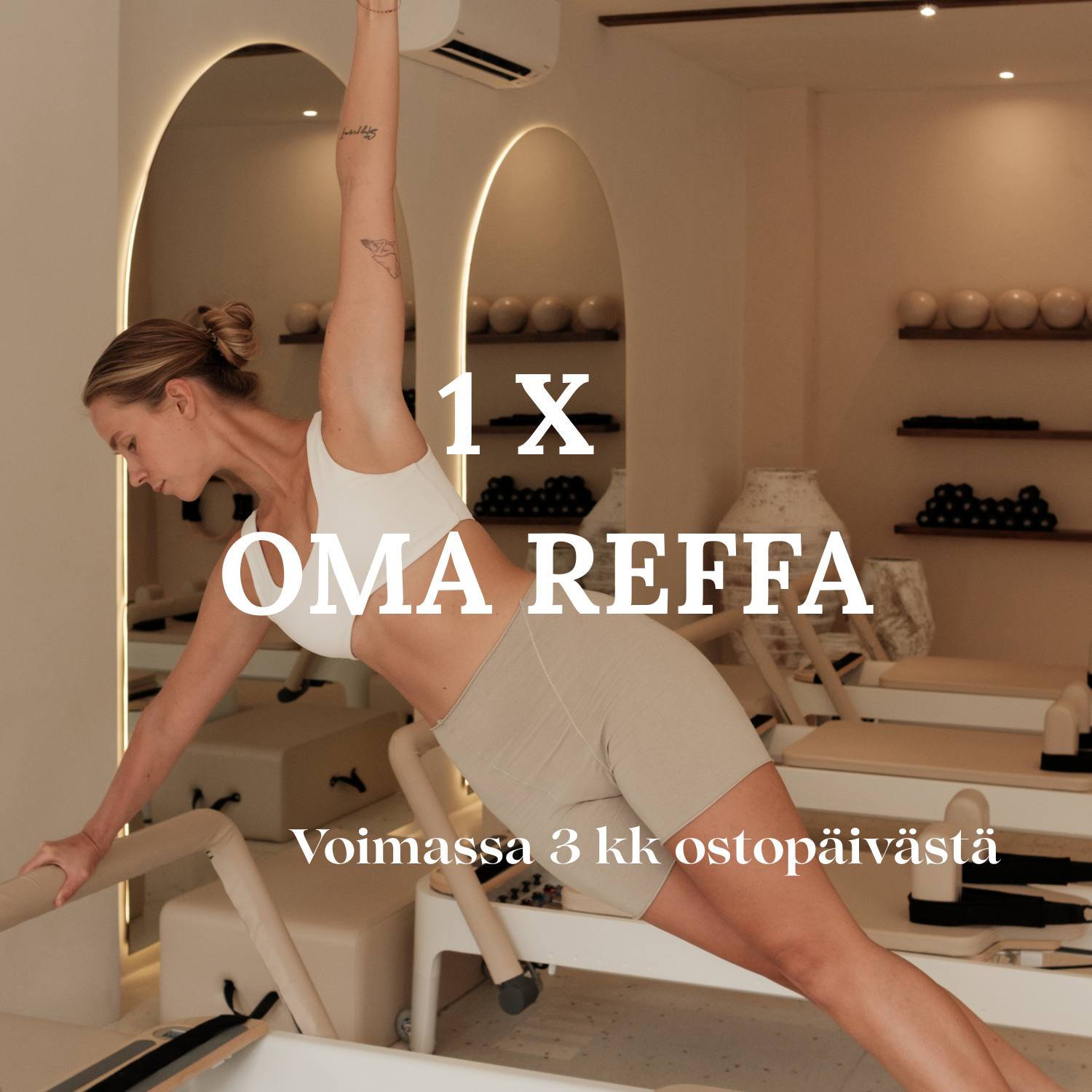 OMA REFFASSA harjoittelet itsenäisesti video-ohjauksen avulla. Valitse treenisi yli 600 videon joukosta ja treenaa milloin vain ja edullisesti! Ei jonotusvuoroja, harjoittele milloin sinulle parhaiten sopii kello 06.00-22.00 välillä. Kortti on henkilökohtainen. Oma reffaan mukaan mukavat treenivaatteet, pilatessukat (liukueste) ja halutessasi omat bluetooth kuulokkeet. Jos et ole ikinä harjoitellut reformerilla tulisi sinun käydä intro-kurssimme.