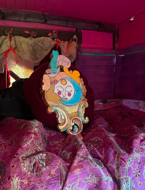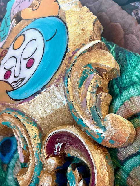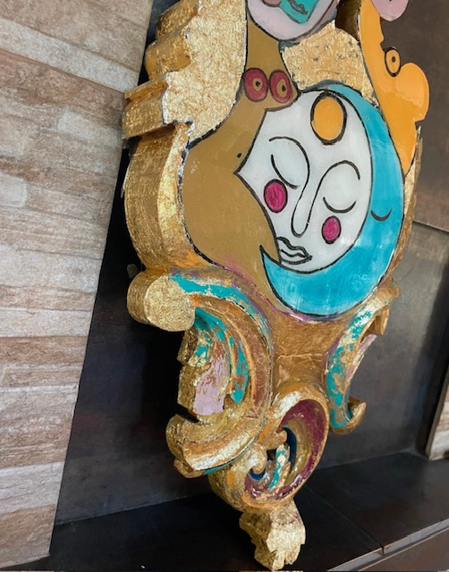Uni, unessa, uneksia. Tämä teos on puiselle pohjalle maalattu uniikki, rauhallisen värikäs, unenomainen teos. Kooltaan näyttävä 54cm korkea, 28cm leveä ja noin 5cm syvä lakattu ja kultahipuin varustettu unisieppari. Ripustusvalmis ja tämä huoneessa tekee unisen tunnelman kun sen aika on. Maalaan ja valmistan kaikki teokseni täällä Etelä-Pohjanmaalla metsän keskellä hirsipirtissäni, ja näiden teosteni mukana lähtee voimaannuttavia värähtelyitä maailmalle. Lähetän seurattavana pakettina.