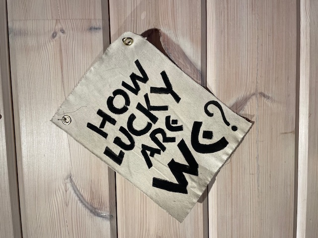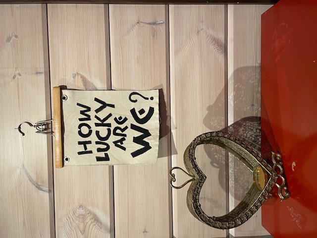 Uniikki Seinälle ripustettava kankainen teos, 34x25cm, joka ei ole vain koriste, vaan inspiraation lähde jokaiselle katselukerralle. Käsin maalattu ja suomalaista käsityötä. Hymyn herättävä heitto tai sanonta rohkeaan ja humoristiseen kotiin. Hyvä keskustelunaloittaja :) Erittäin kuluneen rustiikkiseksi käsitelty! Ei kehyksiä vaan ripustus metallirenkaiden avulla, naulalla, nastalla tai vaikkapa narulla. Rustiikkinen tausta: kankaan takapuolikin on käsitelty maaleilla ja väreillä, eli tämä on kokonaan kuin vanhasta kankaasta leikattu pala. HUOM! Myös reunat epätasaiset ja päättelemättömät.