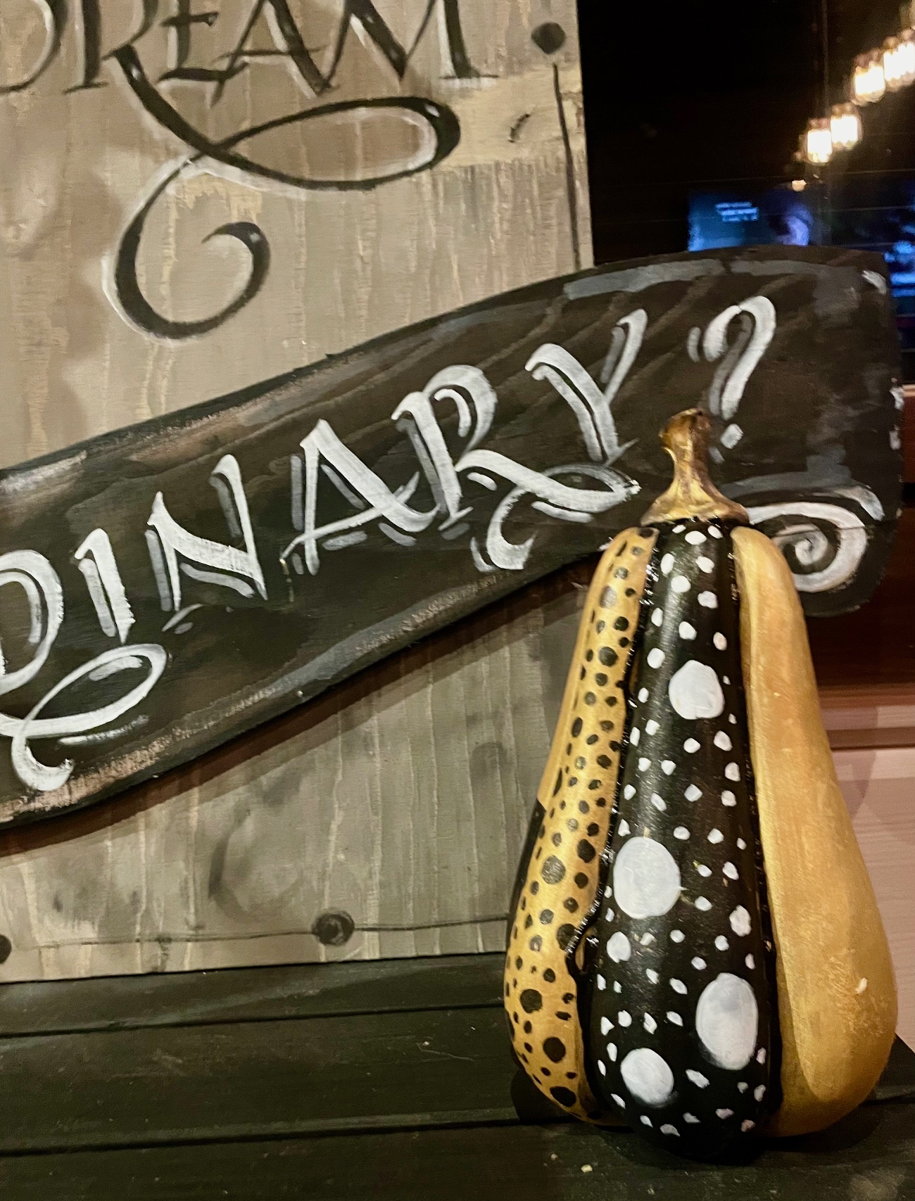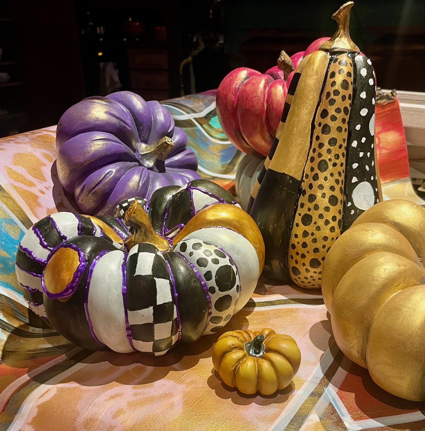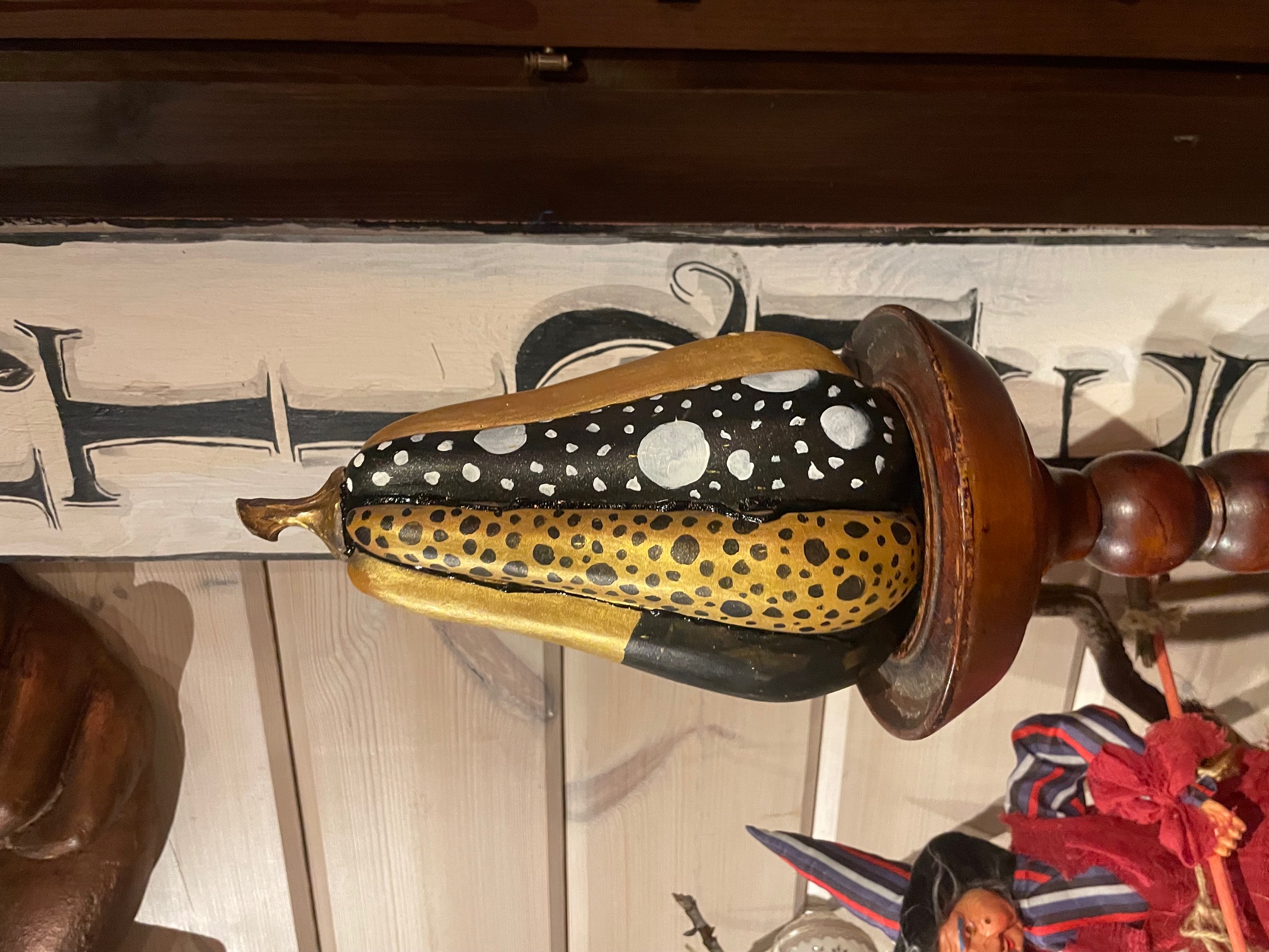Hauska, monivärinen korkean mallinen kurpitsainen, sopii ympäri vuoden koristeksi. Maalaan näitä "shakki"kuvioisia kurpitsaisia itse eli ei tule heti samanlaista vastaan, uniikki kappale siis.. Kuvissa muitakin myynnissä olevia somisteita, mutta tämä tuo korkea, hoikan mallinen kaunokainen. Aika kaunis, aidonkin näköinen ja moneen somistukseen sopiva :) Painava, 500g eli tätä voi pitää terassillakin. En jättäisi lumisateen - sateen - auringon armoille kuitenkaan. Materiaaliltaan polyresiiniä. Mukavan kookkaan, kokoinen, näyttävän 25cm korkea ja 13cm leveä pohjastaan.