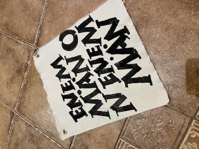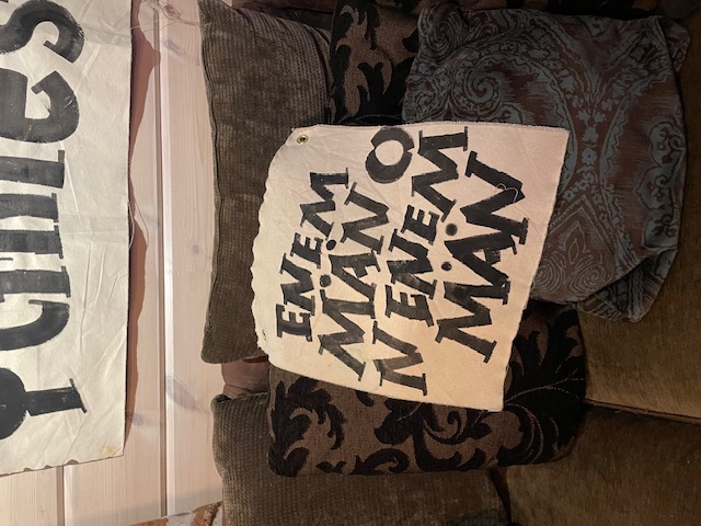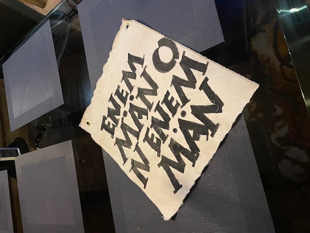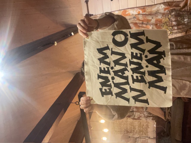 tietenkin :) Uniikki Seinälle ripustettava kankainen teos, 42x36cm, joka ei ole vain koriste, vaan inspiraation lähde jokaiselle katselukerralle. Käsin maalattu ja suomalaista käsityötä. Hymyn herättävä heitto tai sanonta rohkeaan ja humoristiseen kotiin. Hyvä keskustelunaloittaja :) Erittäin kuluneen rustiikkiseksi käsitelty! Ei kehyksiä vaan ripustus metallirenkaiden avulla, naulalla, nastalla tai vaikkapa narulla. Rustiikkinen tausta: kankaan takapuolikin on käsitelty maaleilla ja väreillä, eli tämä on kokonaan kuin vanhasta kankaasta leikattu pala. HUOM! Myös reunat epätasaiset ja päättelemättömät.
