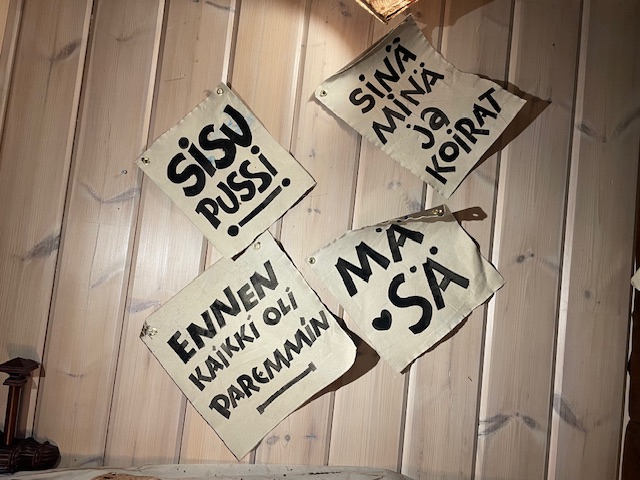 Muuta ei tarvita :) Uniikki Seinälle ripustettava kankainen teos, 36x41cm, joka ei ole vain koriste, vaan inspiraation lähde jokaiselle katselukerralle. Käsin maalattu ja suomalaista käsityötä. Hymyn herättävä heitto tai sanonta rohkeaan ja humoristiseen kotiin. Hyvä keskustelunaloittaja :) Erittäin kuluneen rustiikkiseksi käsitelty! Ei kehyksiä vaan ripustus metallirenkaiden avulla, naulalla, nastalla tai vaikkapa narulla. Rustiikkinen tausta: kankaan takapuolikin on käsitelty maaleilla ja väreillä, eli tämä on kokonaan kuin vanhasta kankaasta leikattu pala. HUOM! Myös reunat epätasaiset ja päättelemättömät.