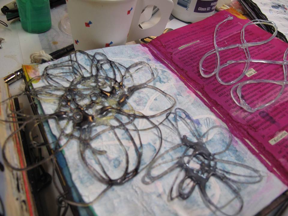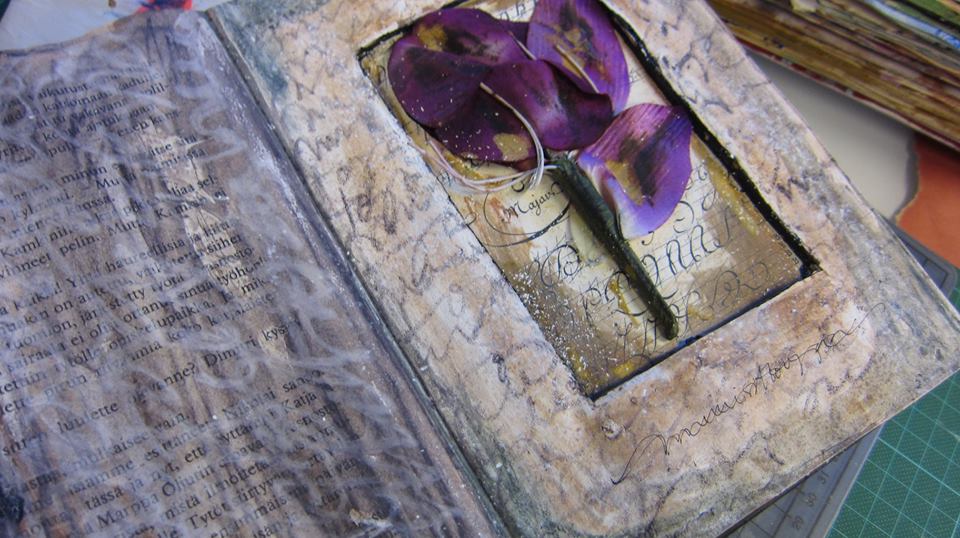 Kaikki kurssilla oppimasi vinkit ja tekniikat voit suoraan siirtää ihan vaikkapa korttiaskarteluun tai seinätauluihin, puhumattakaan valokuva-albumien tuunauksesta/skräppäyksestä. Tämän kurssin opeilla voit tehdä vaikka minkälaisia teoksia kotona. Englanniksi kirjan tuunaus on Altered Book Arts/Journaling, joka kuulostaakin aika hienolta : =)
