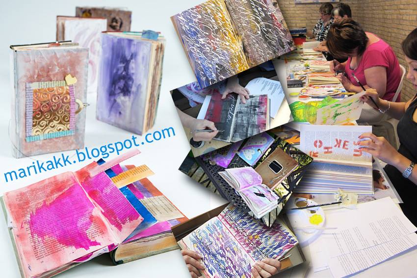 Tämä kirjantuunaus kurssi on ihan perustekniikoita käsittelevä kurssi. Kun osaat perusjutut, pystyt itsekkin viemään tekniikoita pidemmälle ja pidemmälle, ihan kotona. Marika näyttää tuunausta perusvälinein, vesivärein, akryylivärein jne. mutta voit aina käyttää hyväksesi jo olemassa olevia värejä, stansseja, leimasimia ja muita mixed media tekniikkavärejä.
