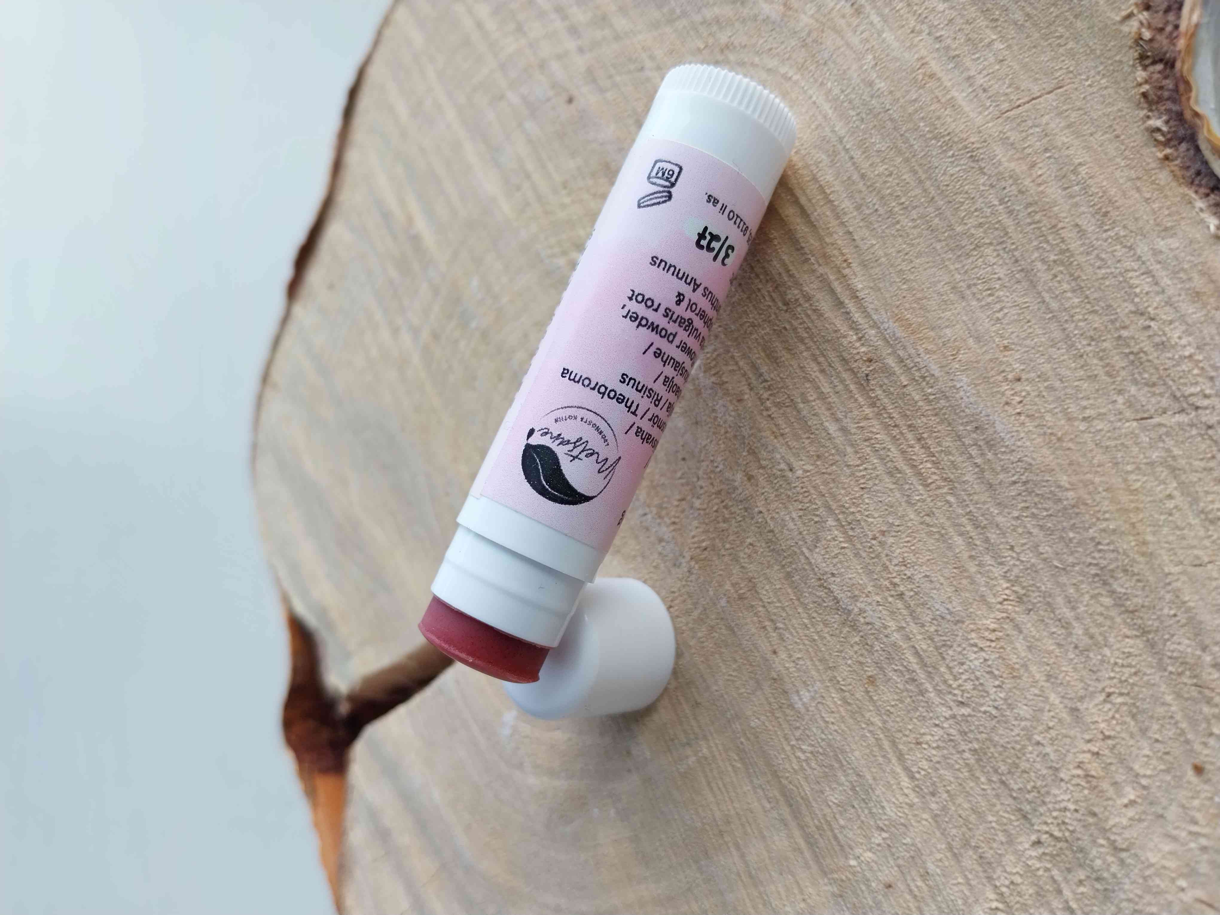 Ainesosat: Mangovoi, kotimainen mehiläisvaha, Kaakaovoi, Risiiniöljy, Jojobaöljy, Punajuurijauhe, Hibiskusjauhe, E-vitamiini & Auringonkukkaöljy.