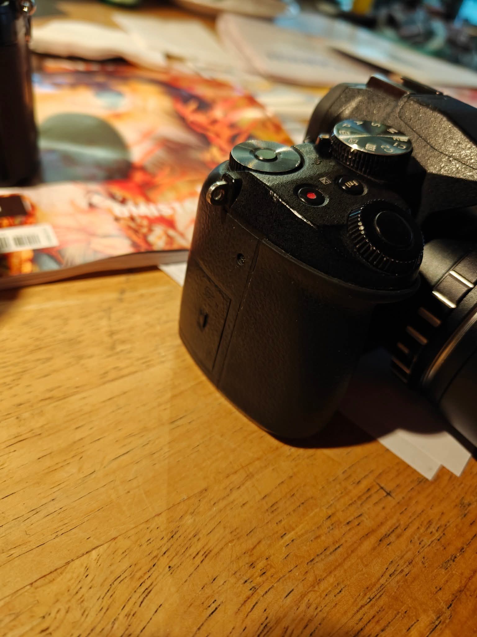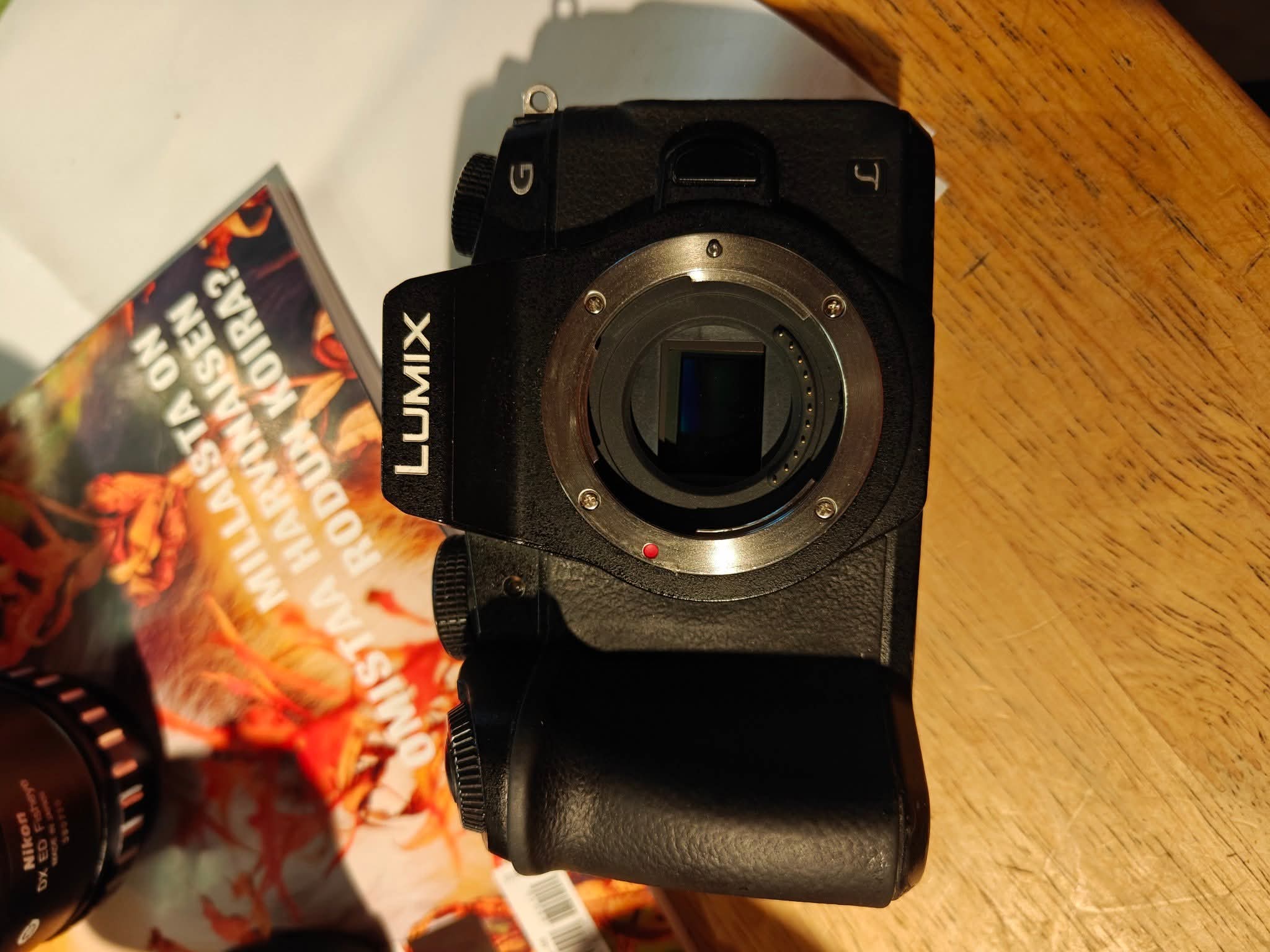 Muuten hyvässä kunnossa ja pientä kulumaa muistikortin luukun gripissä. Ainoa vika ettei laukaisin napin rulla reagoi mihinkään. Ei ole ollut meidän käytössä ongelma.