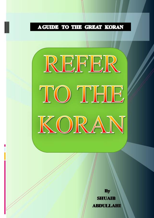 REFER TO THE KORAN is a 60 pages book containing references from the Koran and some quotations of the Bible; however it is mainly focused on the koranic verses to serve as a guide and a comprehensible tool which can lead a novice to the guidance of GOD (The Great Koran).