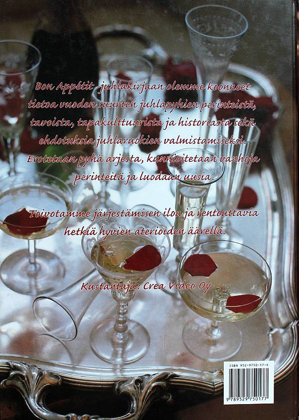 Kirjaan on koottu tietoa vuoden suurten juhlapyhien perinteistä, tavoista, tapakulttuurista ja historiasta sekä ehdotuksia juhlaruokien valmistamiseksi. Kirja sisältää runsaasti etu-, pää- ja jälkiruokien reseptejä sekä upeita ruoka- ja tunnelmakuvia.