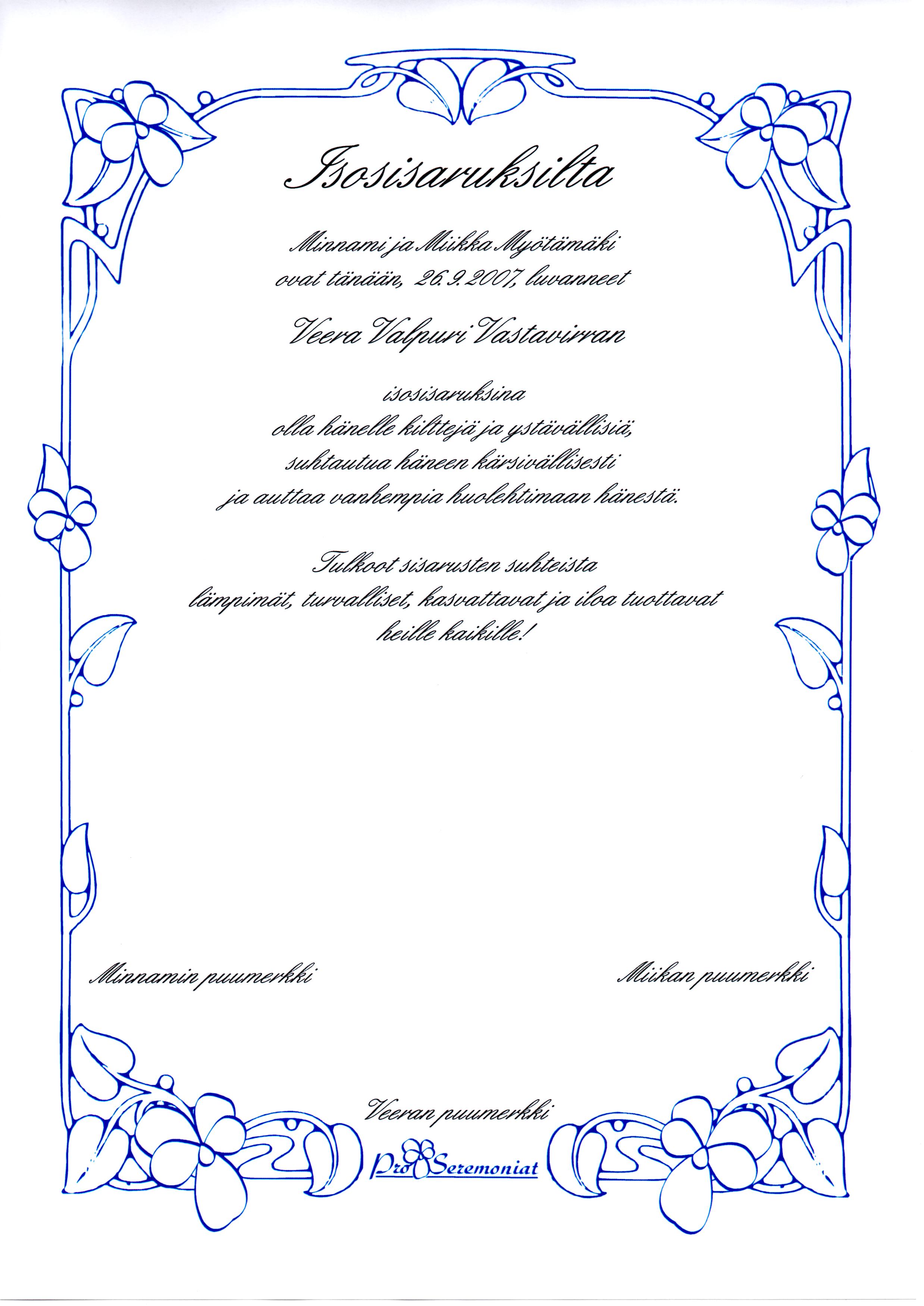 Mikäli jokin asia pohdituttaa, ota jo ennen tilauksen tekemistä yhteyttä toimistoomme sähköpostitse: posti@pro-seremoniat.fi tai puhelimitse: 050 590 4390.