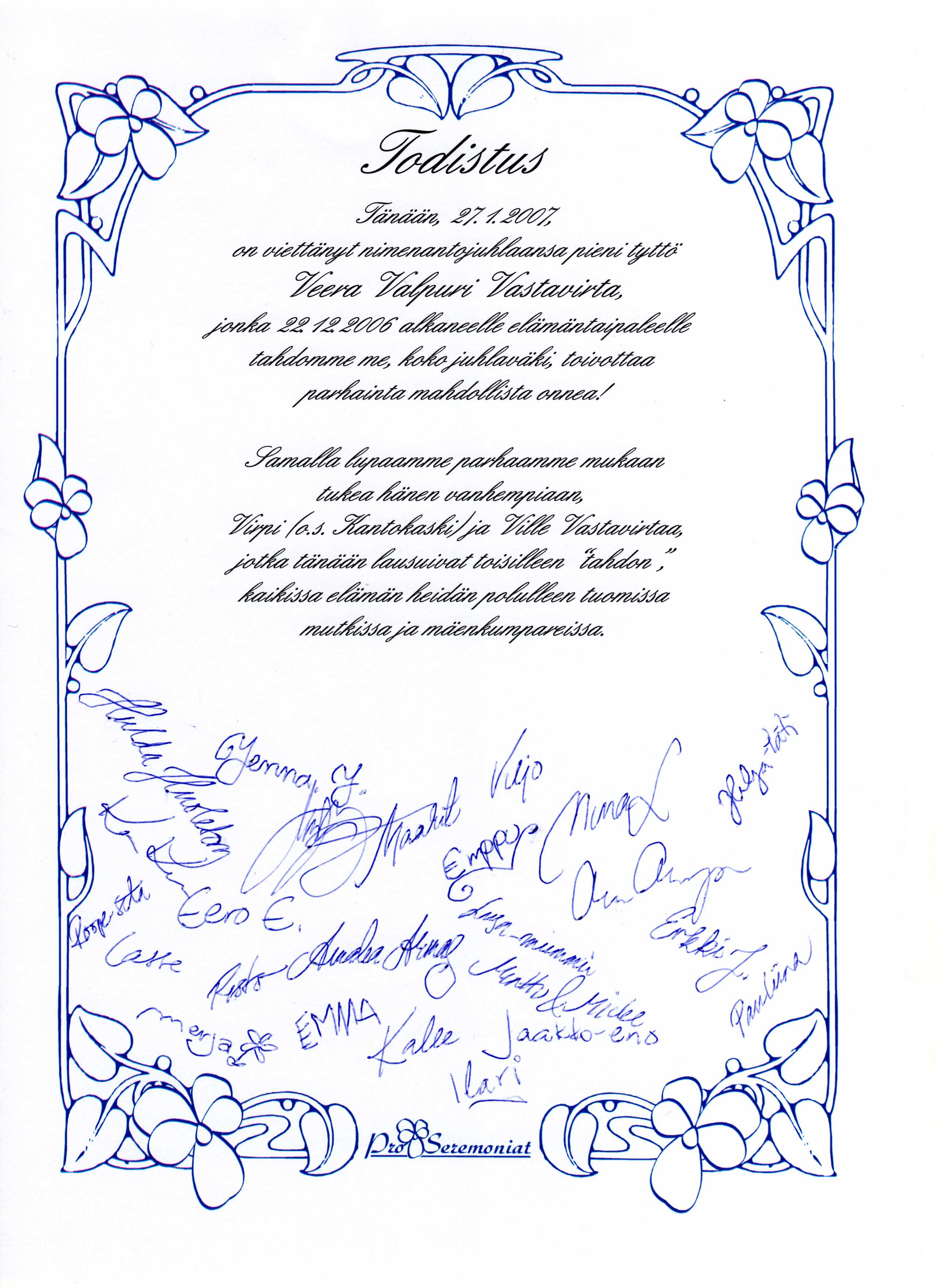 Usein vanhempien avioitumista ja vauvan nimenantoa juhlitaan samalla kertaa. Todistukset voidaan tilata erillisinä, mutta myös yhteisen todistuksen laatiminen onnistuu ja jää muistuttamaan suuresta päivästä.