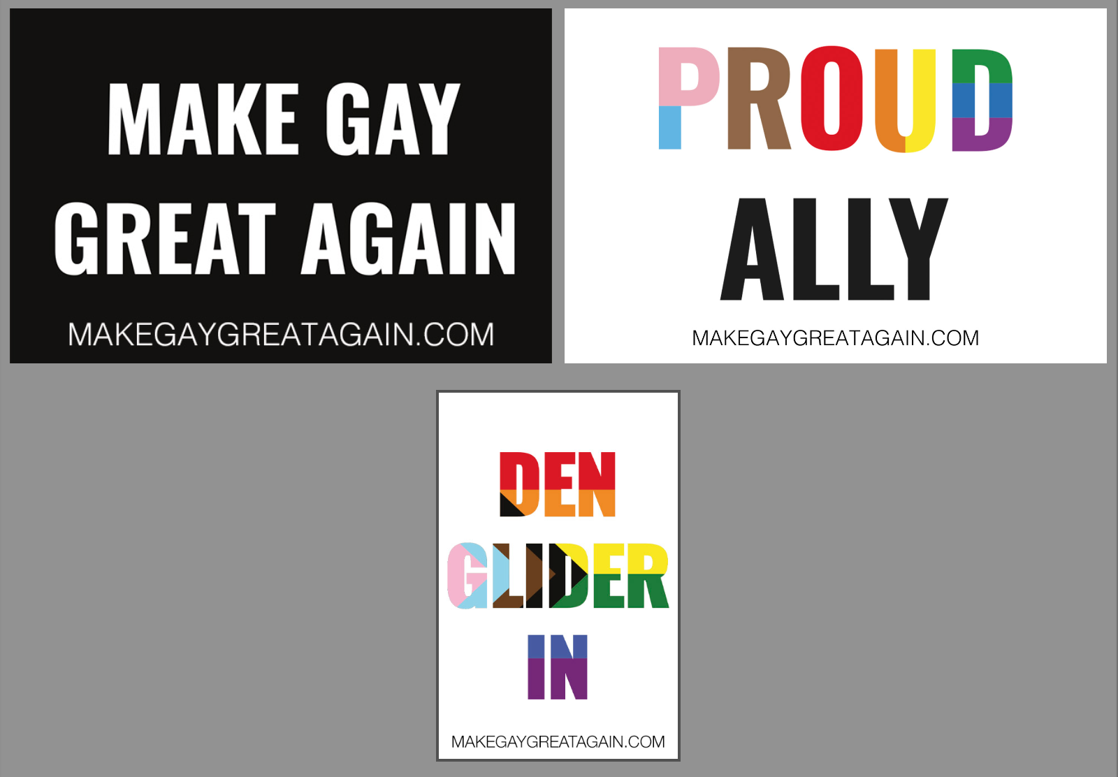 TRE HOMO KRONOR TARRAMIX -TARRASETTI! LÄPPÄRIIN! MEIKKIPEILIIN! PÄDIIN! KIRJOIHIN, KANSIIN, TASOIHIN! HOMOSLOGANIEN KUNINKAAT KOLMEN SETTINÄ. SISÄLTÄÄ MAKE GAY GREAT AGAIN (CLASSIC MUSTAVALKO), PROUD RAINBOW ALLY JA DEN GLIDER IN WITH PRIDE TARRAT! TARROJEN KOKO 55 X 84mm, MATTAPINTA. PRINTATTU SUOMESSA. HINTA SISÄLTÄÄ TOIMITUSKULUT KOTIMAAN KIRJEPOSTILLA.