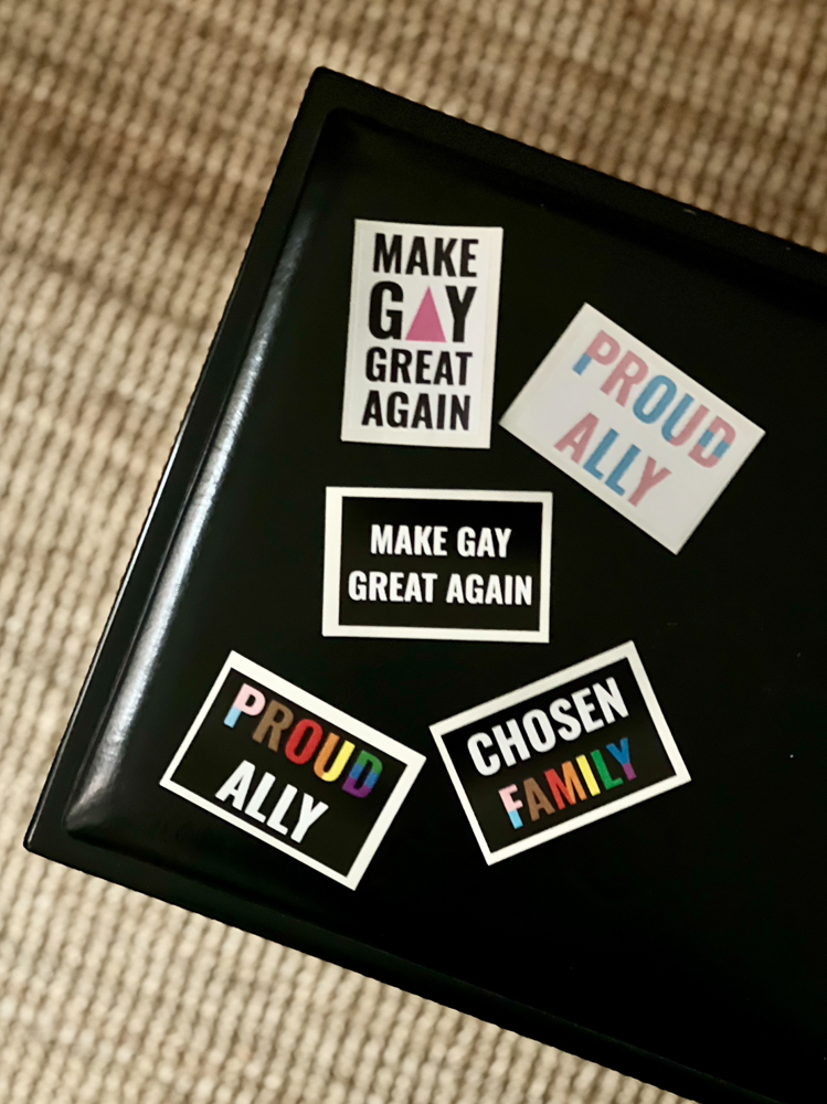 HOMOTARRA MEGAMIX TARRASETTI! LÄPPÄRIIN! MEIKKIPEILIIN! PÄDIIN! KIRJOIHIN, KANSIIN, TASOIHIN! MYYDÄÄN VIIDEN SETTINÄ, JOKA SISÄLTÄÄ CHOSEN FAMILY (RAINBOW), MAKE GAY GREAT AGAIN (CLASSIC MUSTAVALKO), MAKE GAY GREAT AGAIN MEMORIAL, PROUD TRANS ALLY JA PROUD ALLY (SATEENKAARI) TARRAT. TARROJEN KOKO 55 X 84mm, MATTAPINTA. PRINTATTU SUOMESSA. HINTA SISÄLTÄÄ TOIMITUSKULUT KOTIMAAN KIRJEPOSTILLA.