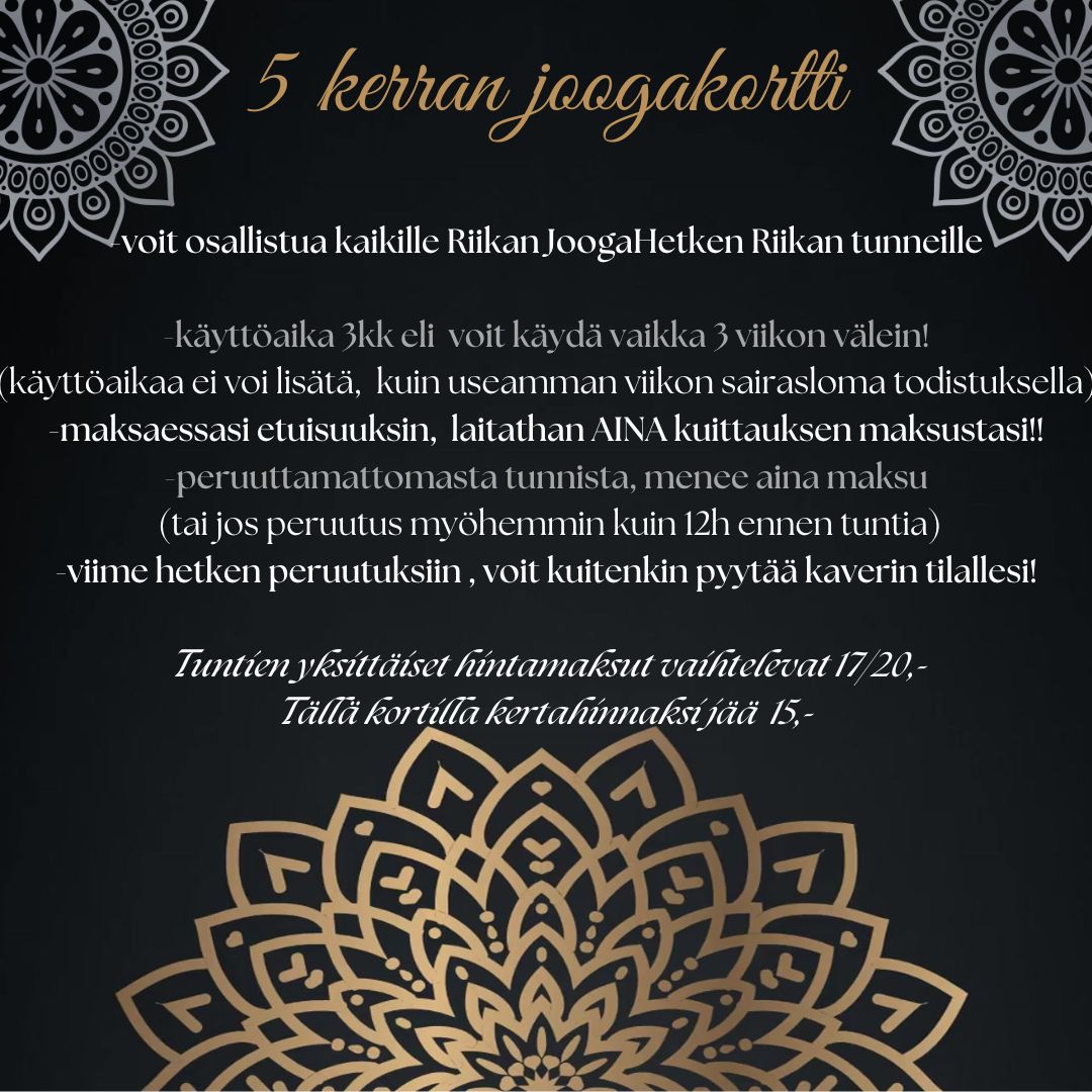 5 kerran kortti Riikan JoogaHetken Riikan ryhmäliikunta tunteihin,