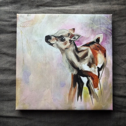 Pieni poronvasa painettuna canvas-tauluksi puisille kiilakehyksille, teos on ripustusvalmis & signeerattu. Koko 20x20x2cm.