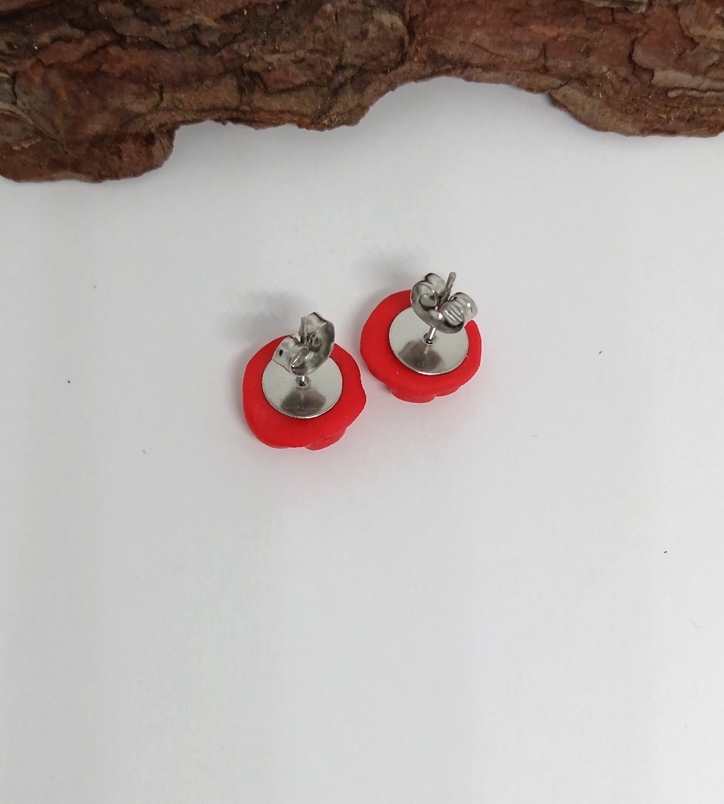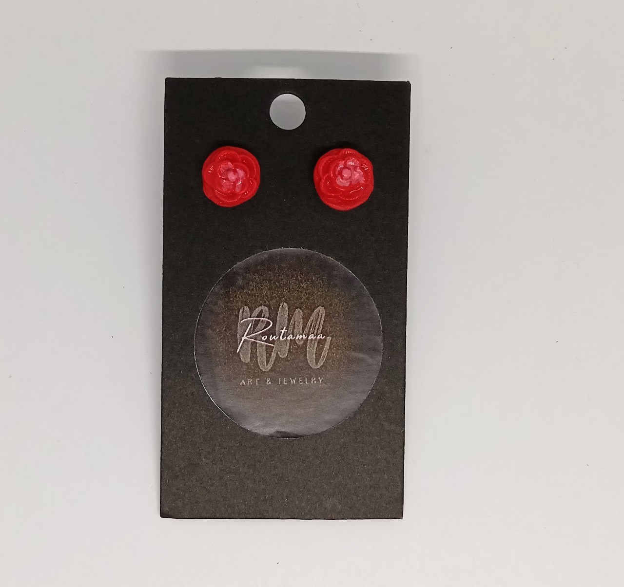 Fimomassasta muotoillut napit, joiden halkaisija on n. 10 mm. Tapit ovat ruostumatonta terästä.
