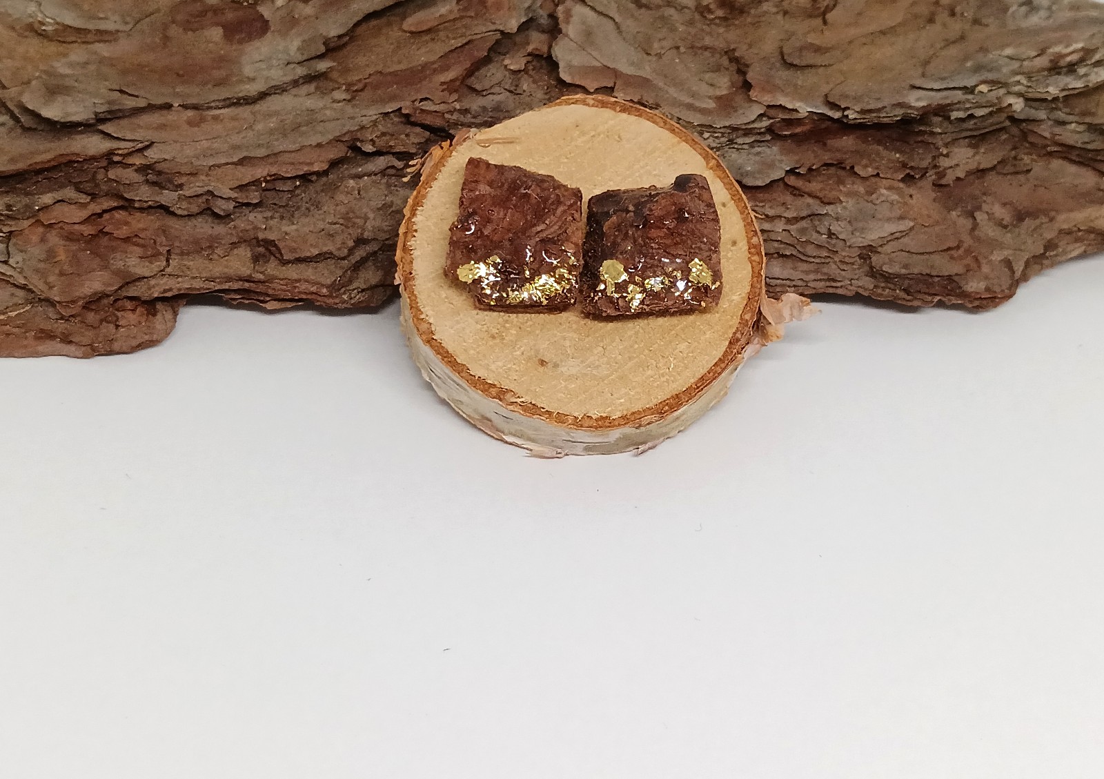 Kaarnan kosketus – nappikorvakorut Aidosta männyn kaarnasta valmistetut nappikorvakorut, joissa yhdistyvät metsän voima ja luonnollinen kauneus. Kaarna on päällystetty hartsilla.