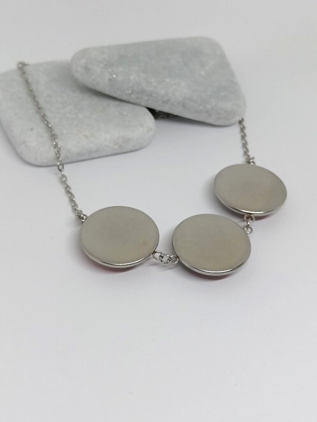 Riipusten halkaisija on 2 cm. Ketjun pituus on 42 cm, kokonaispituus on 50 cm. Korunosat ovat ruostumatonta terästä.