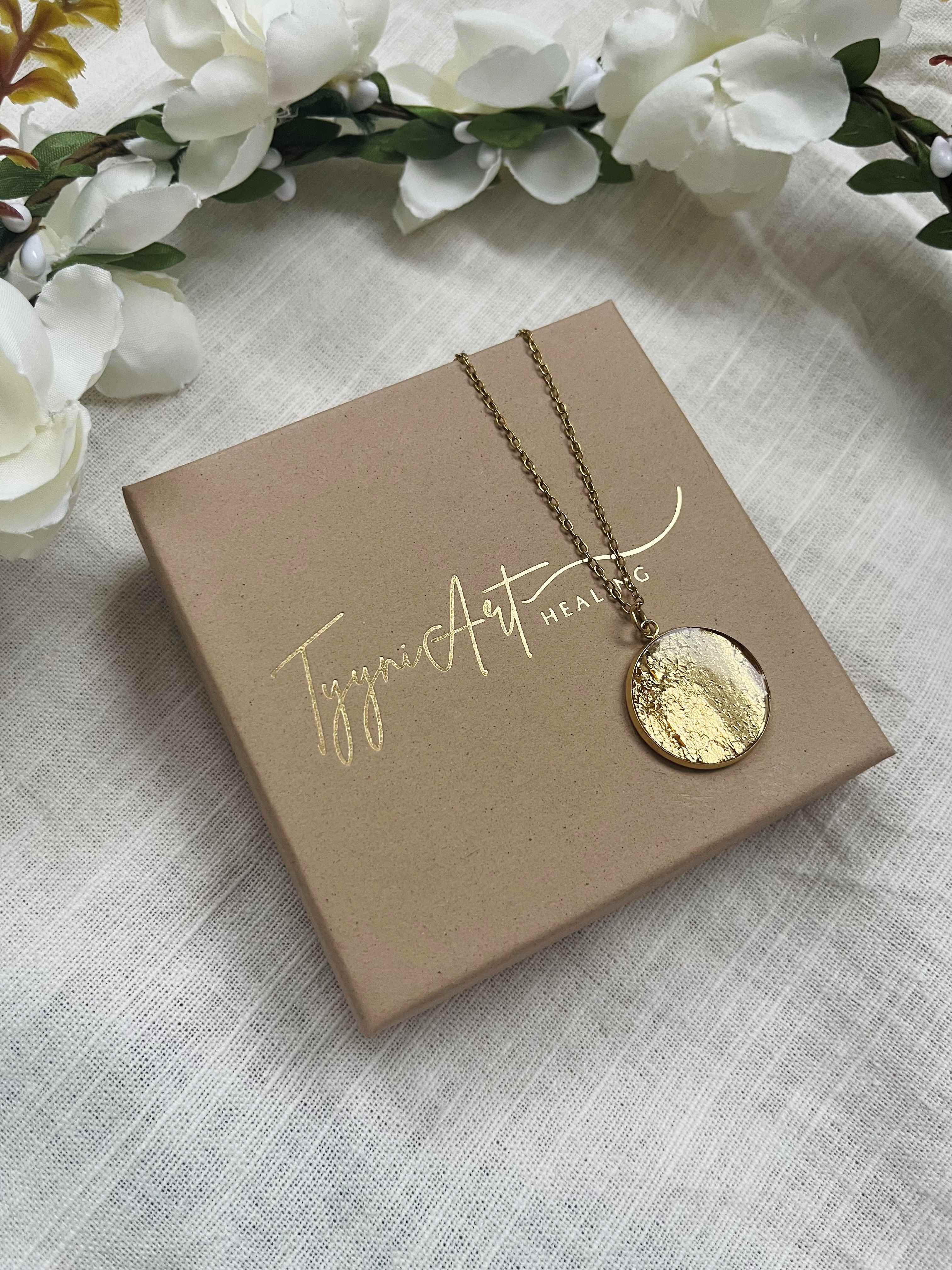 Rakkaudella valmistettu " GOLDEN TIME" taidekaulakoru kutsuu näkemään ja tuntemaan kultaisen ajan. Ajan, jossa runsaus, ilo, kauneus ja kaikki mahdollisuudet on läsnä. Riipus säihkyy kauniisti valon osuessa siihen, se muistuttaa myös kantajaansa uniikista säihkyvästä sisäisestä valosta.