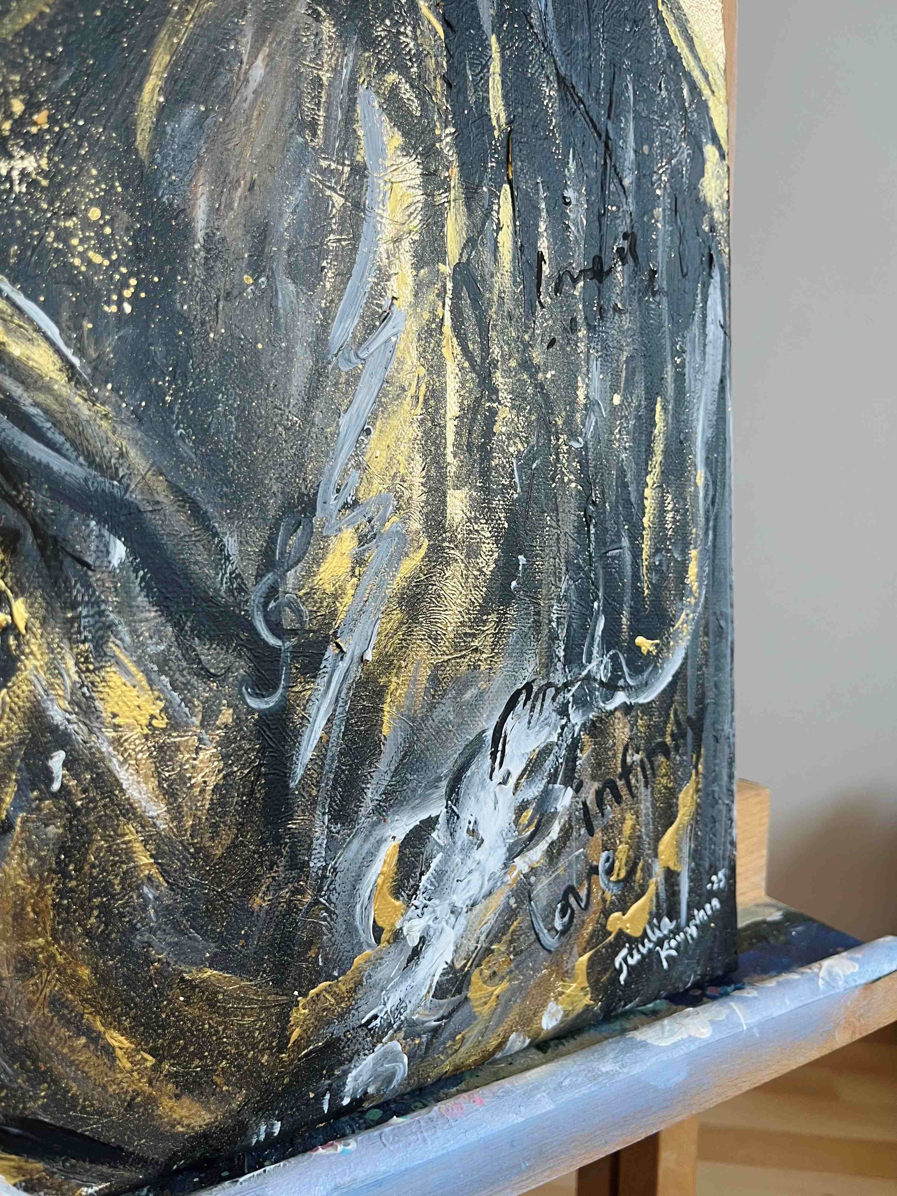 Tekniikka: Akryylimaalit canvas pohjalle, lehtikulta