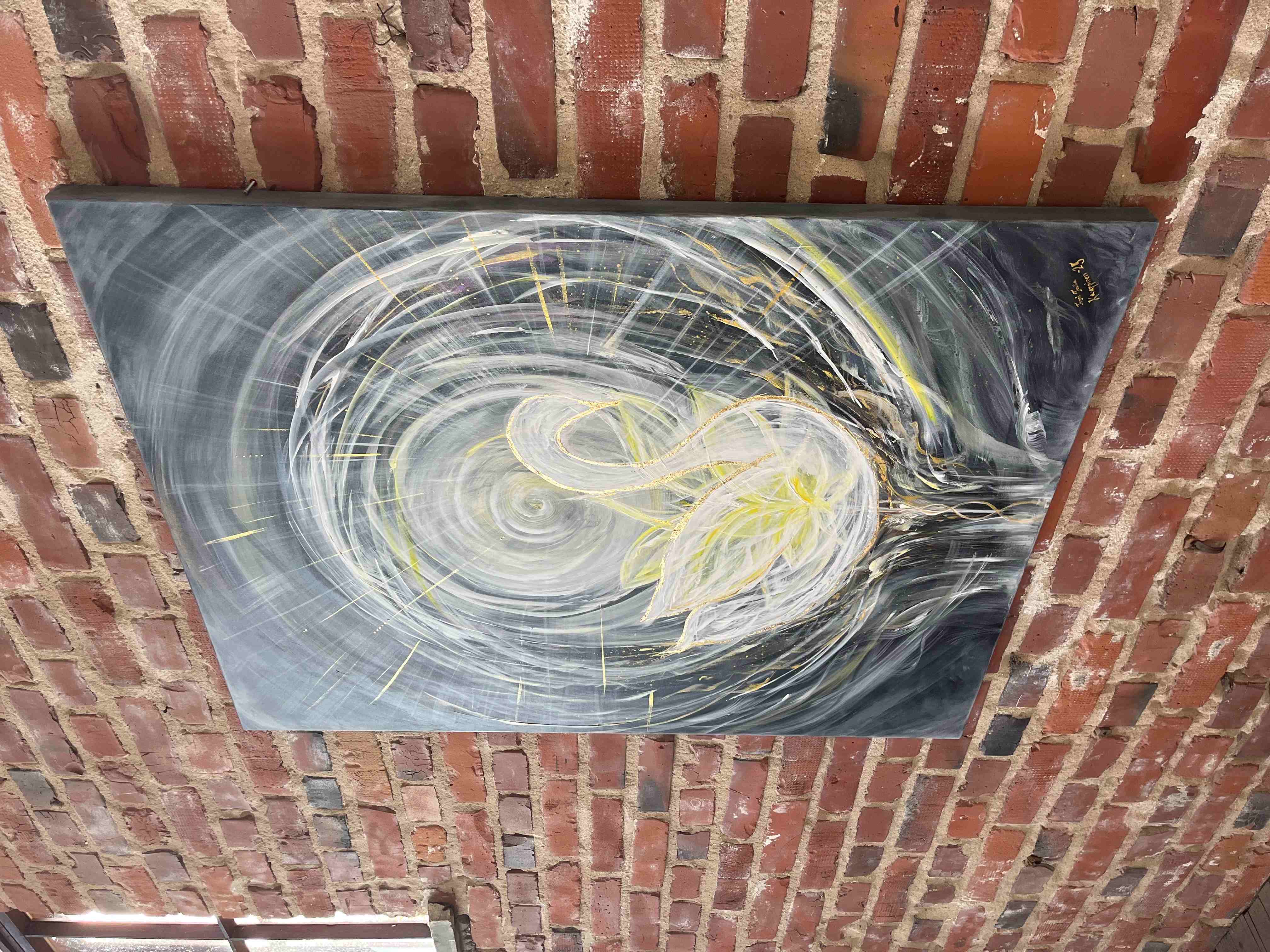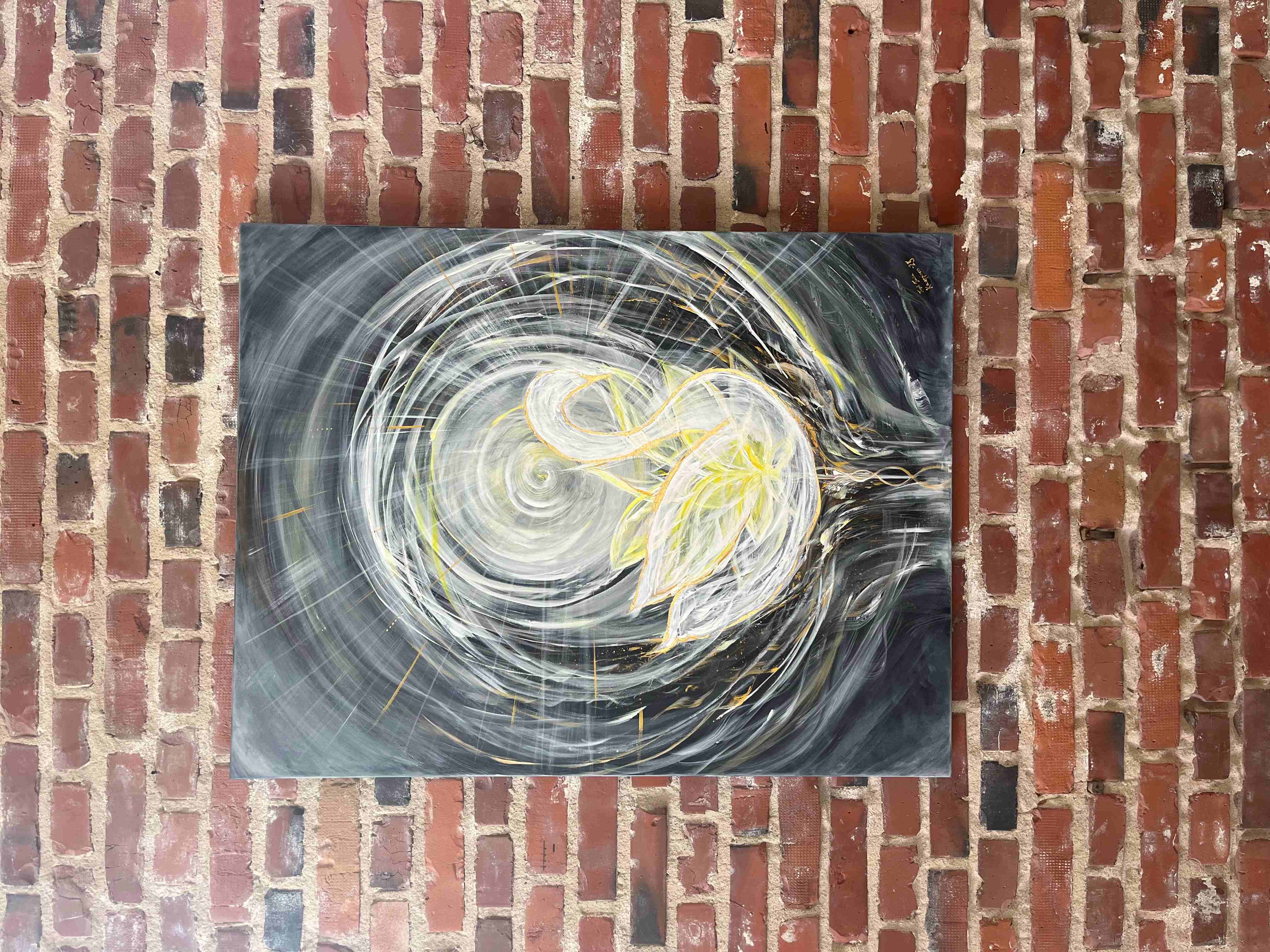 Tekniikka: Akryylimaalit kankaalle, lehtikulta