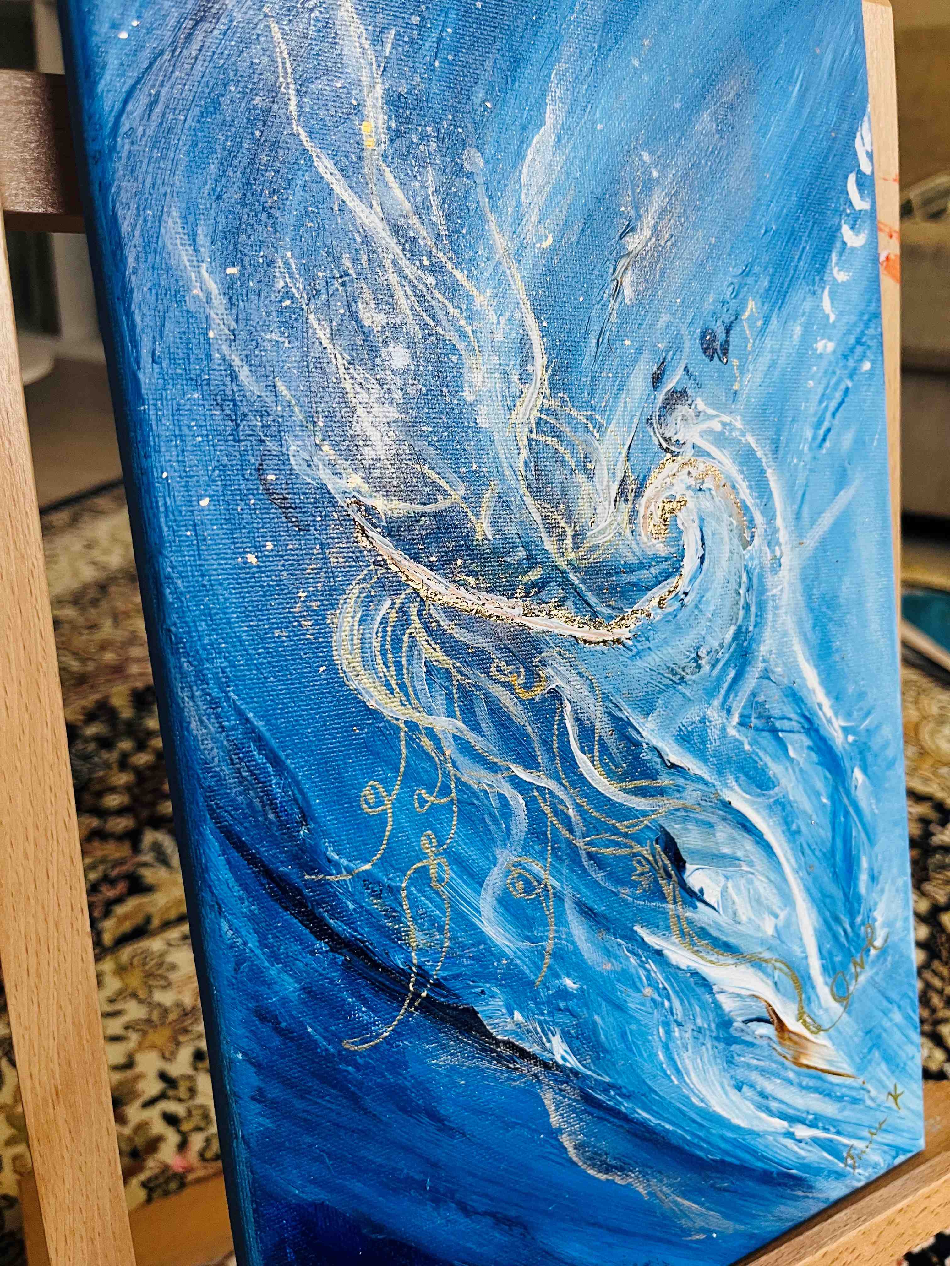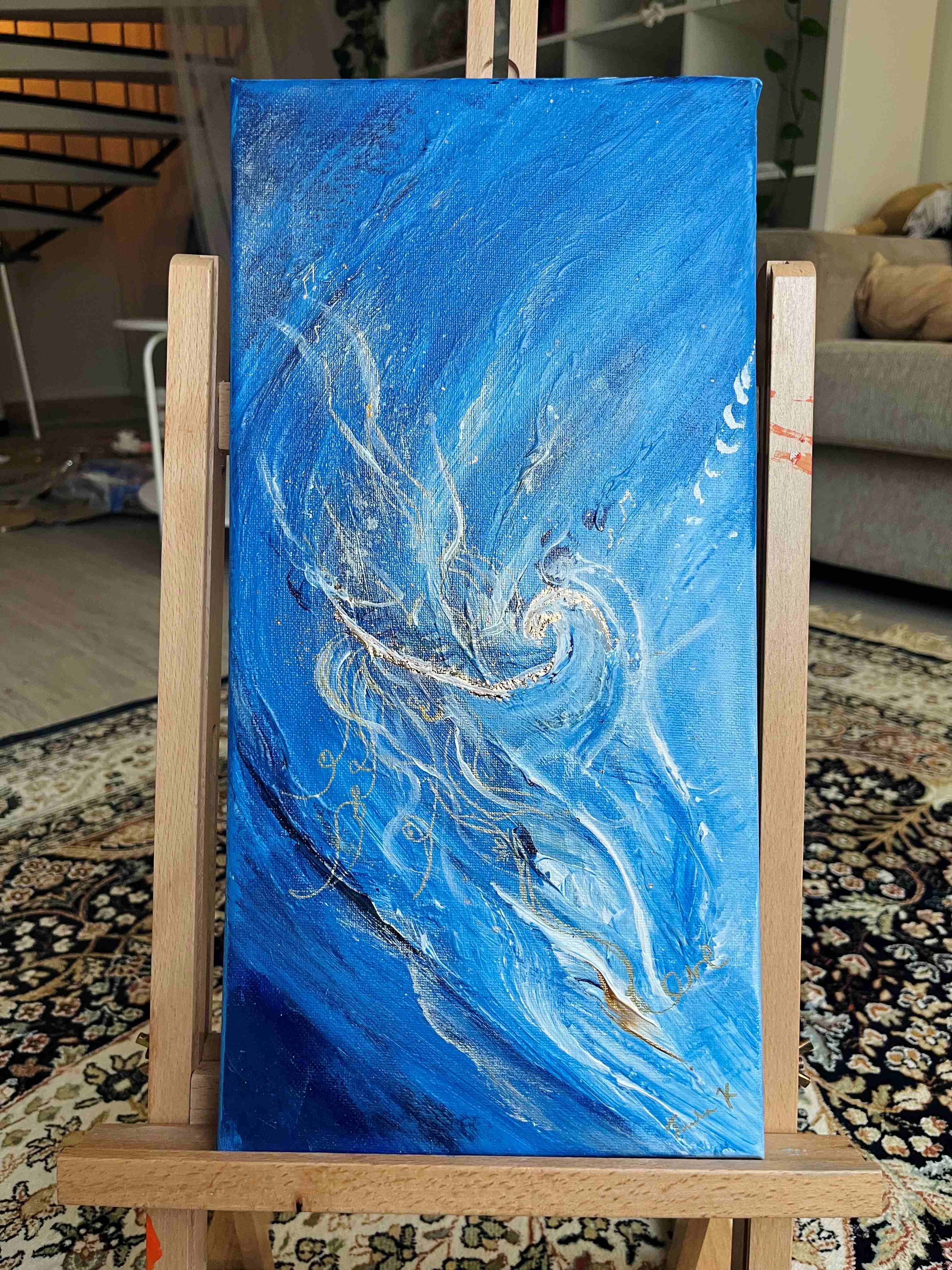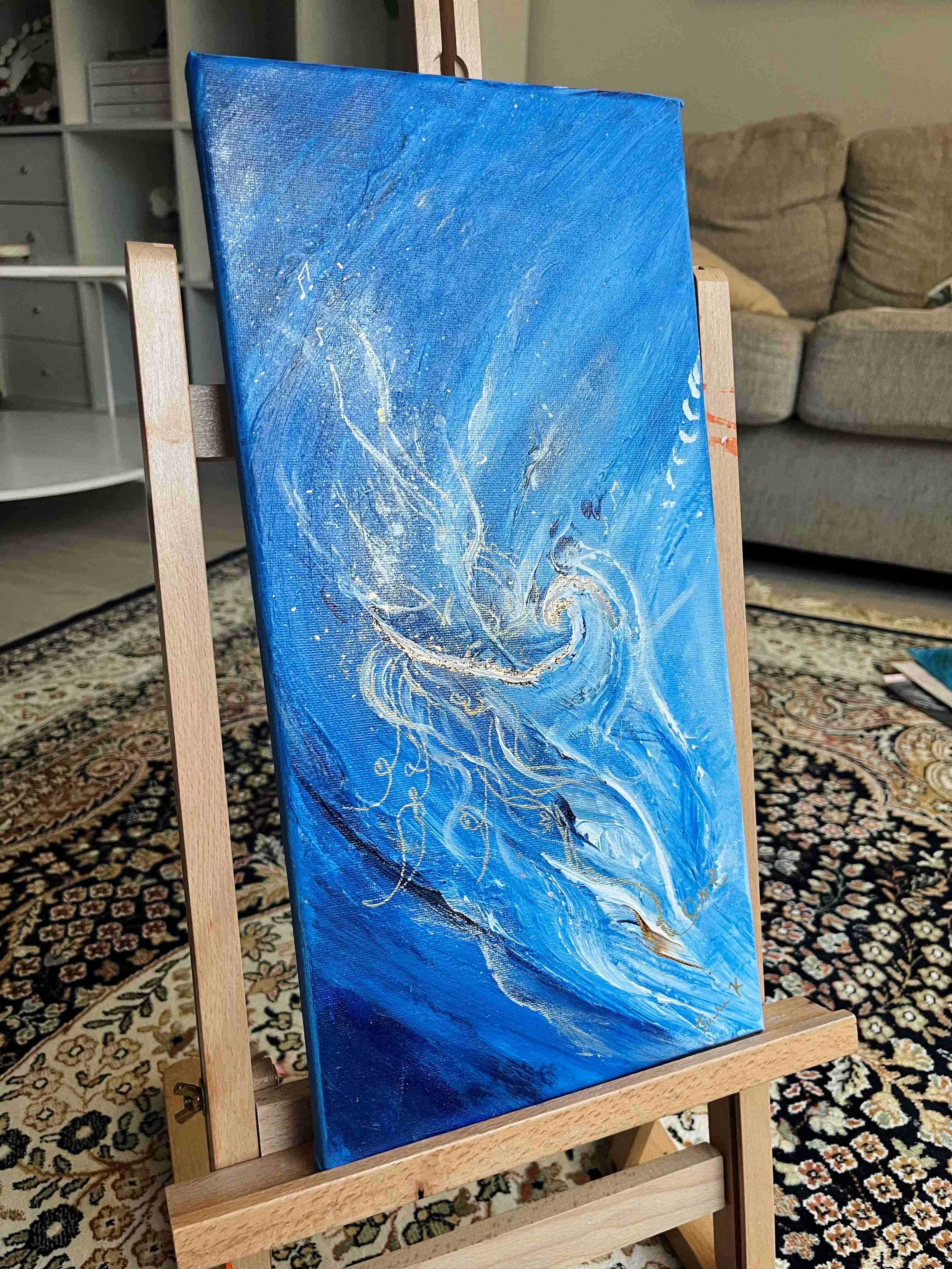 Koko: 40x19,5cm Tekovuosi 2025 Akryylimaalit, lehtikulta Hintaan sisältyy toimitus Suomessa.