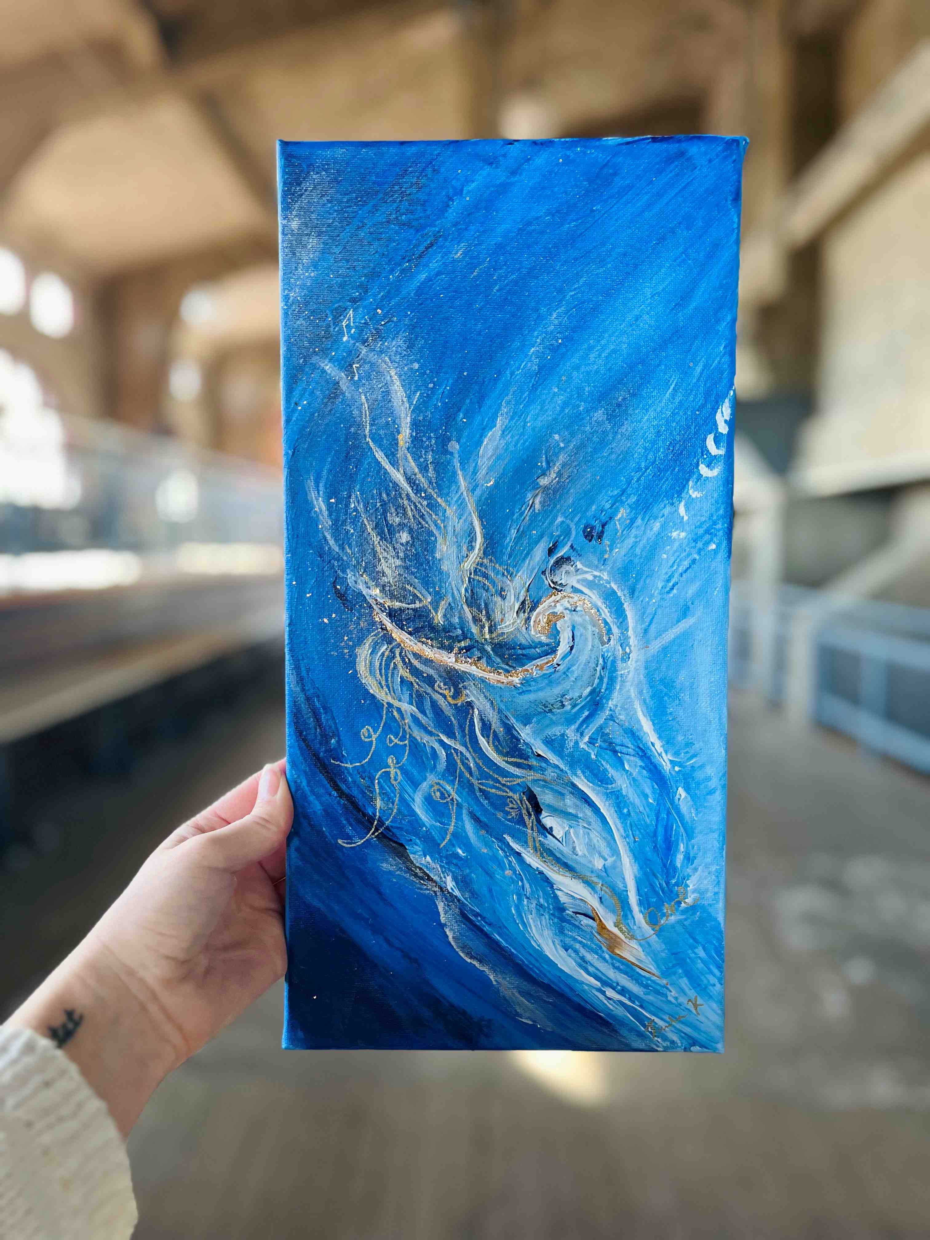 Teos on nähtävillä Tuulia Kauppisen Tunne Voimasi taidenäyttelyssä Lykynlammella 1-28.2.26, Lykynlampi Cafe, Onttolantie 94, Onttola. Teos toimitetaan taidenäyttelyn päätyttyä 1.3.26 alkaen.
